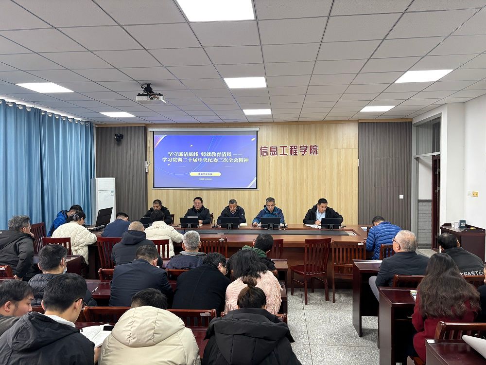 12月4日下午,信息工程学院全体教职工在怀德楼B410会议室开展盐工廉政讲堂活动。本次学习的内容包括:总书记在中纪委三次全会上的讲话精神、中纪委三次全会公报、省纪委四次全会会议精神,研究生导师行为规范等。
