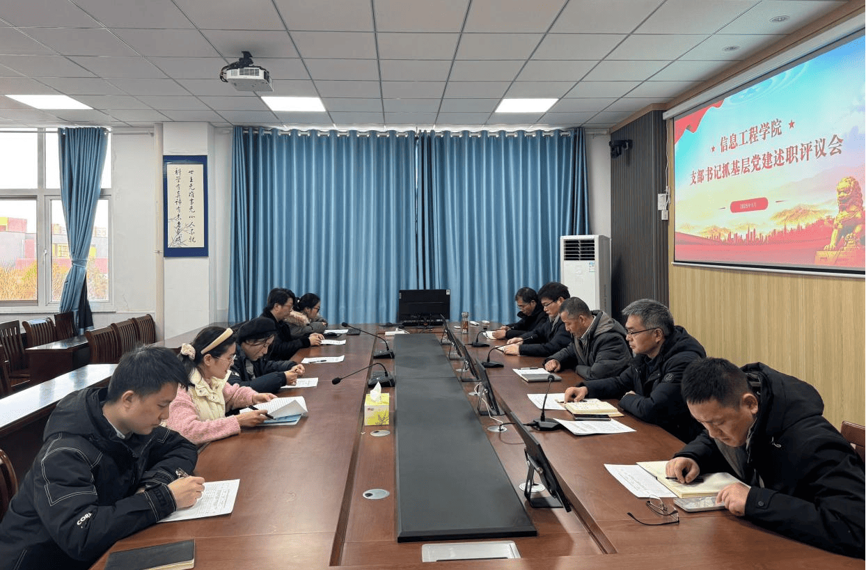 为进一步夯实学院党支部标准化建设,提高党支部书记履职能力,1月10日下午,信息工程学院在希望大道校区怀德楼B410会议室召开2024年党支部书记抓基层党建述职评议会。学院党委委员、全体党支部书记参会。会议由学院党委书记杨军主持。