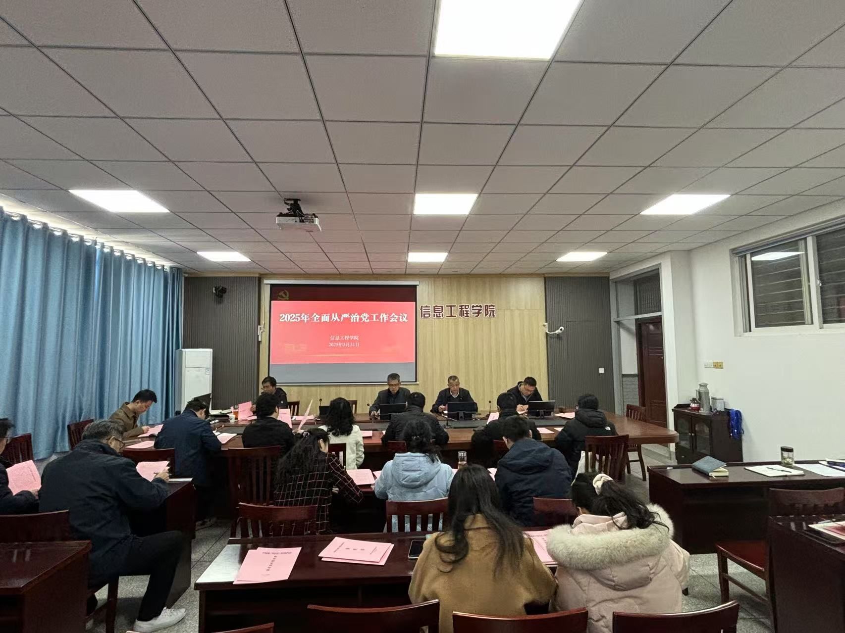 3月31日上午,信息工程学院在怀德楼B410会议召开2025年从严治党工作会议。学院党委书记杨军,院长王如刚,副院长周锋,副书记、纪委书记王源,各科室、专业系、实验中心主任参加会议。