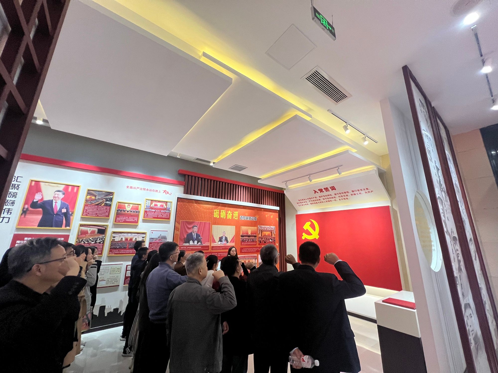 在“管党治党、砥砺前行”展区,党员干部系统学习了党的十八大以来全面从严治党取得的历史性成就,全体党员干部重温入党誓词,以铿锵有力、掷地有声的誓言彰显信息学院党员干部“忠诚、干净、担当”的政治信念和对党的事业、教师工作的赤诚初心。