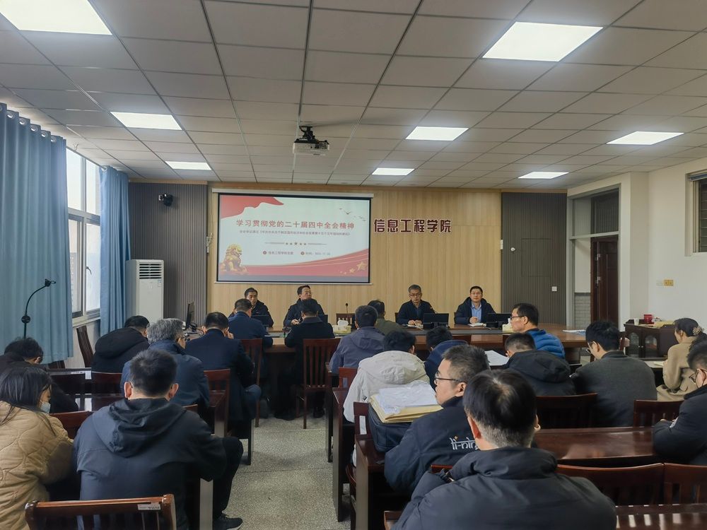 11月26日下午,信息工程学院全体教职工在怀德楼B410学院会议室举行2025秋学期第五次教职工政治理论学习,会议集中学习了党的二十届四中全会精神。