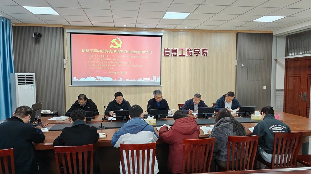 11月28日下午,信息工程学院党委理论学习中心组在怀德楼B410会议室,组织25秋学期第三次集体学习会,会议由学院党委书记杨军主持,党委理论学习中心组成员参加。