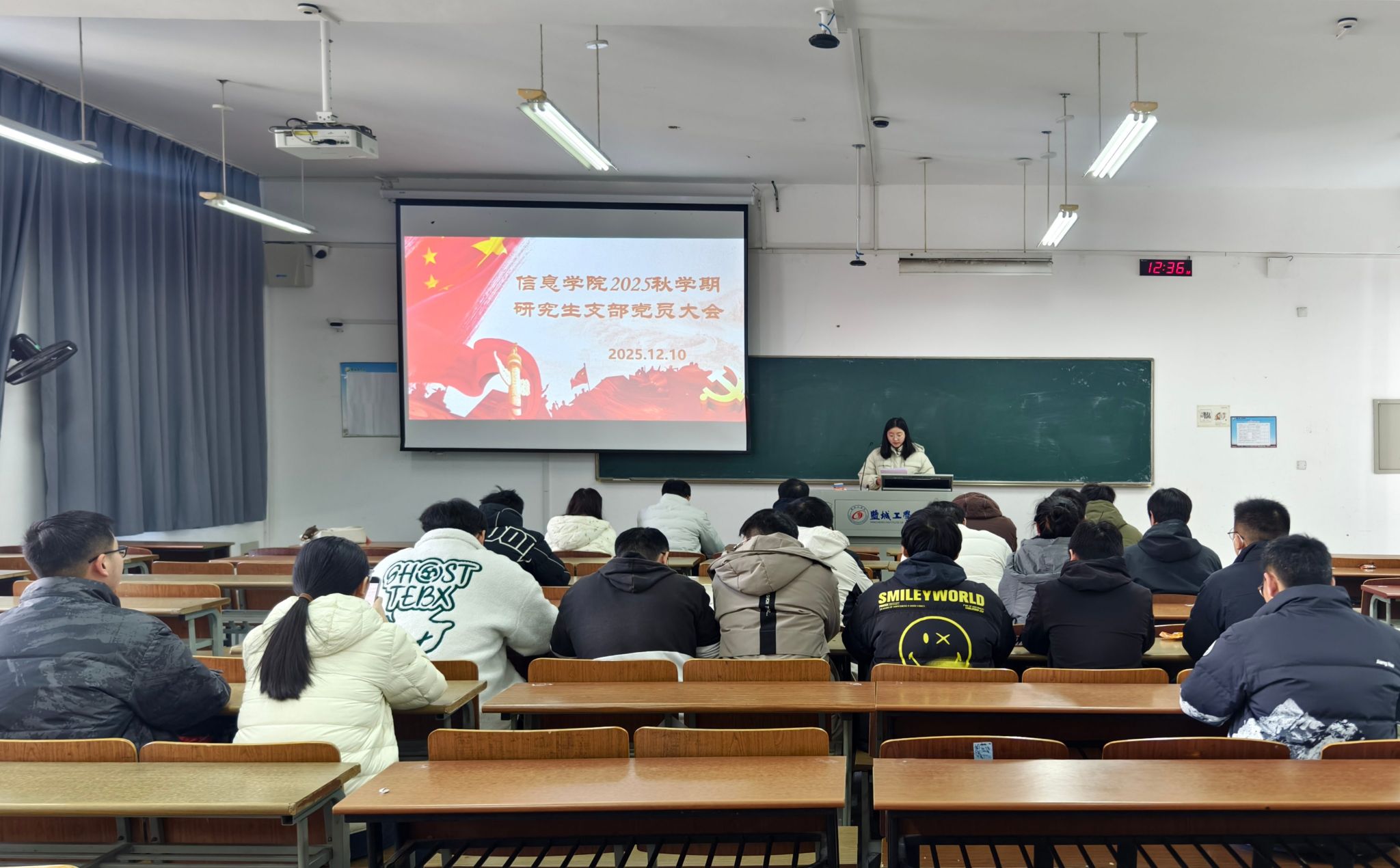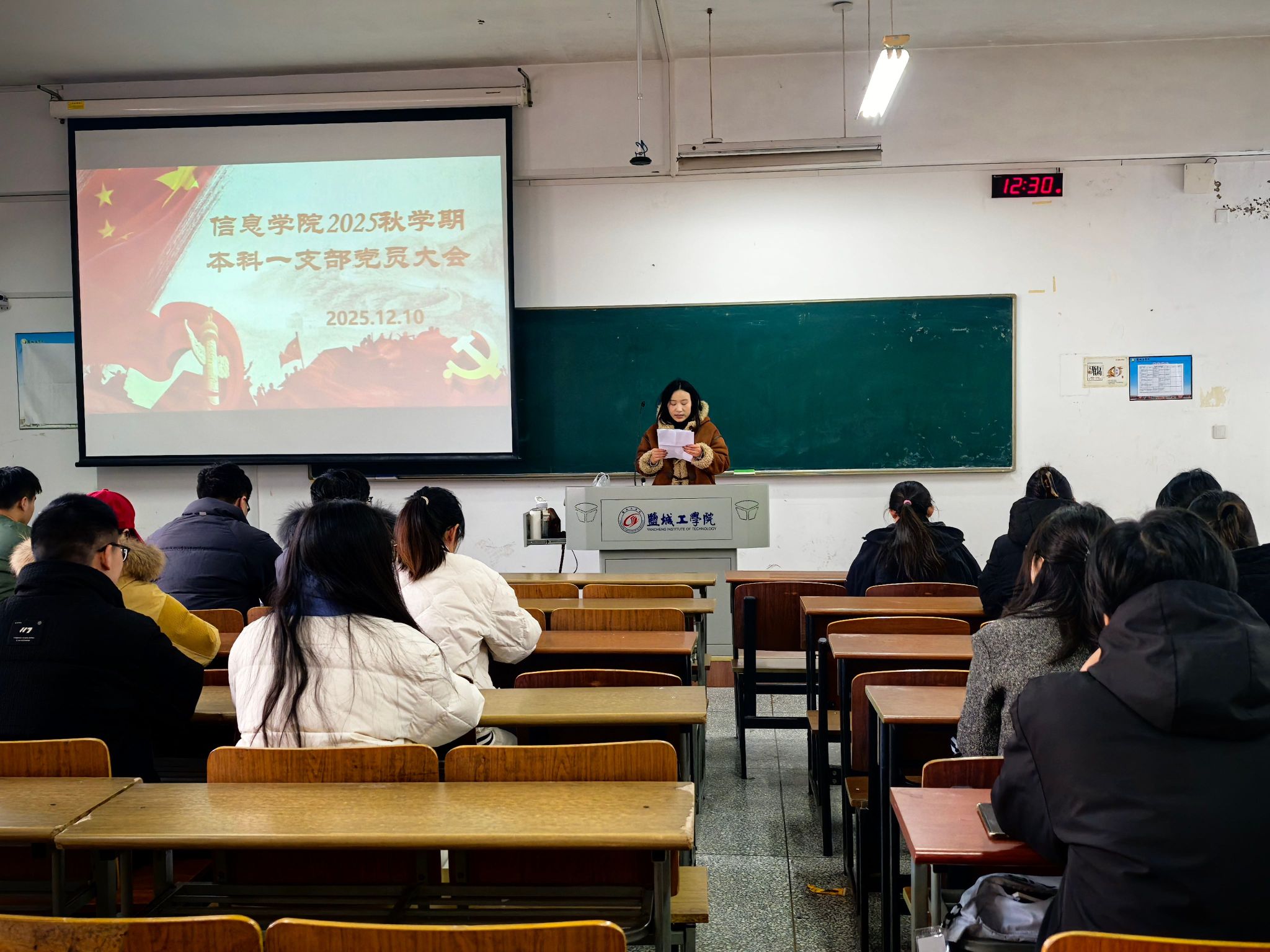 12月10日,信息工程学院研究生党支部、学生第一党支部、学生第二党支部分别在博学楼A306、A307、A308教室召开2025年秋学期接收新预备党员大会。研究生党支部书记许玥、本科第一党支部书记赵艳、本科第二党支部书记田雪俐主持各支部会议,全体党员以及25名拟发展对象参加。