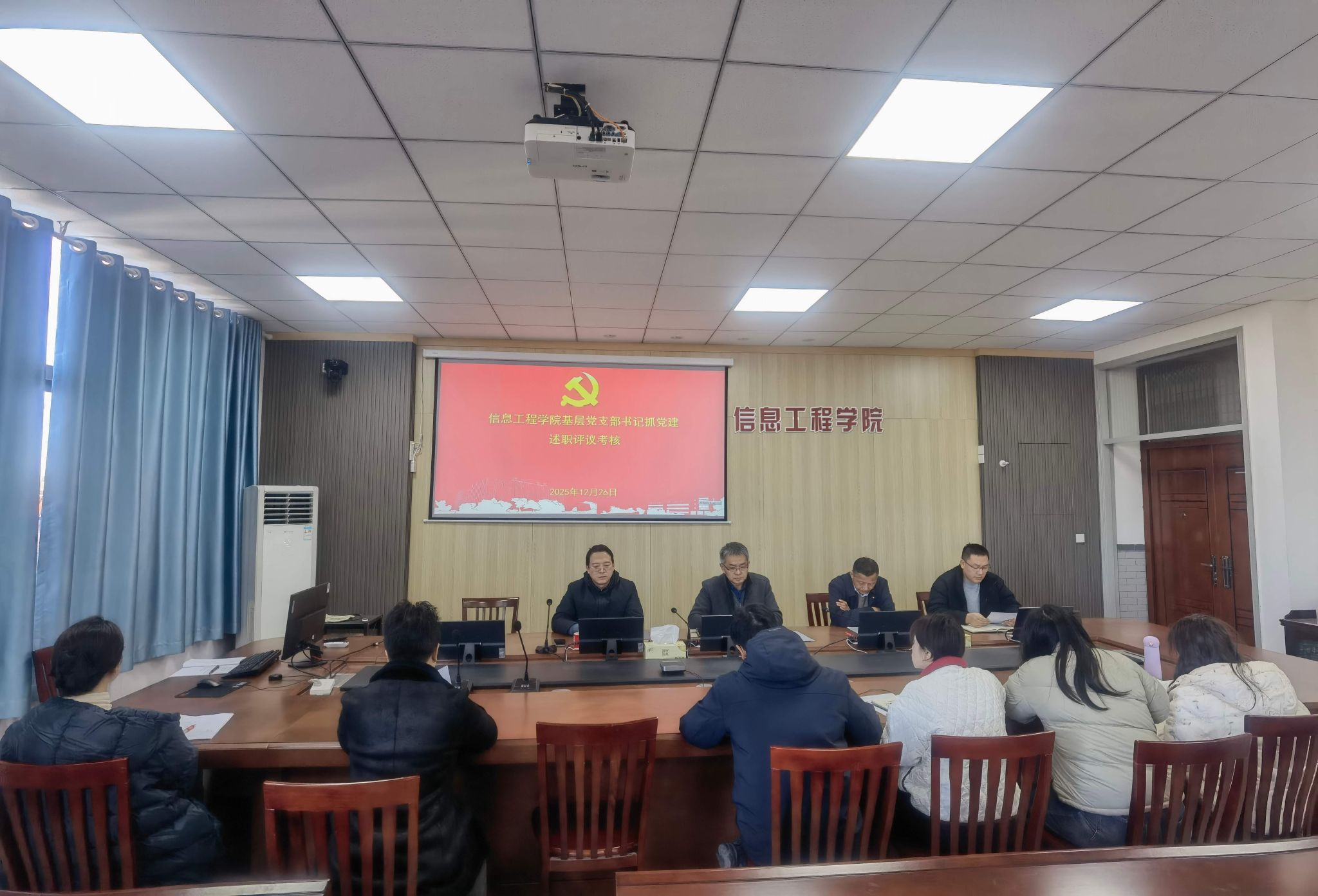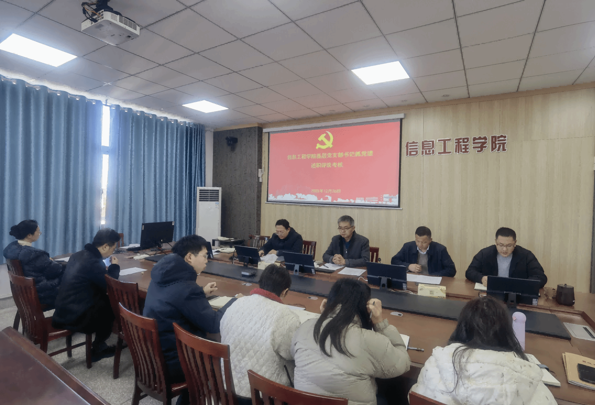 12月26日上午,信息工程学院党委在怀德楼B410会议室组织召开2025年度党支部书记抓基层党建工作述职评议会。学院党委书记杨军主持会议,学院党委委员、各党支部书记参会。