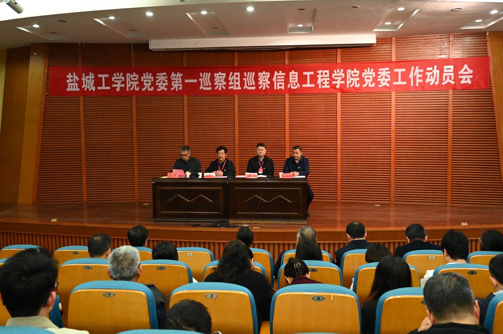 4月8日下午,在南校区润美楼报告厅,校党委第一巡察组召开巡察信息工程学院党委工作动员会。第一巡察组组长王资生,副组长唐浩,党委第一巡察组全体成员,意识形态专项检查组成员李慧,信息工程学院全体教职工,曾任领导班子成员代表,学生党员、干部代表参加会议。动员会由信息工程学院党委书记杨军主持。