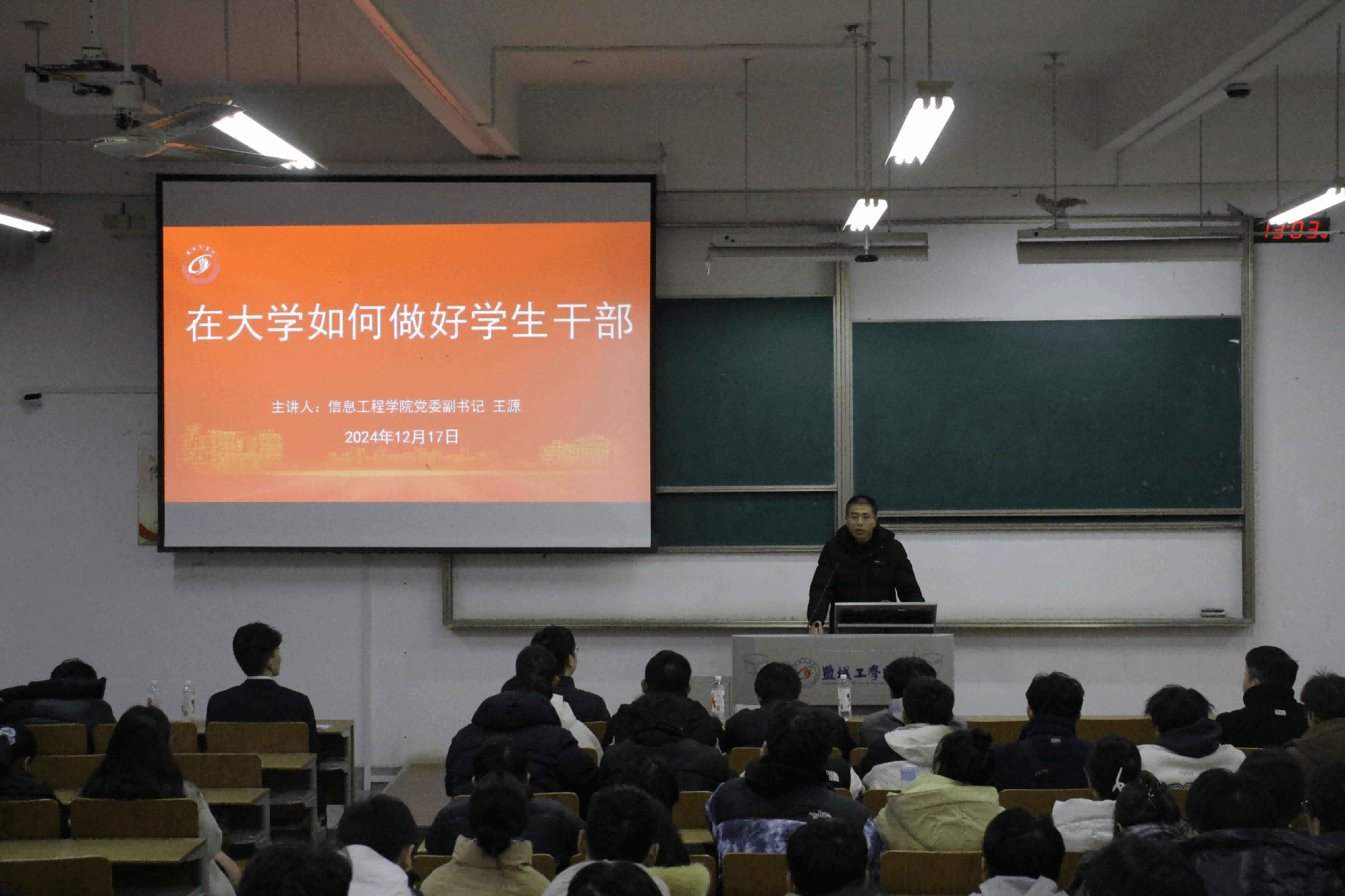 12月17日中午,信息工程学院于博学楼C105举行菁英人才学校培训班开班仪式暨首场青马公开课活动。学院党委副书记王源、团委副书记纪锦霖、学院菁英人才学校培训班全体学员及2024年入党积极分子参加,活动由院团委学生副书记李煜龙主持。