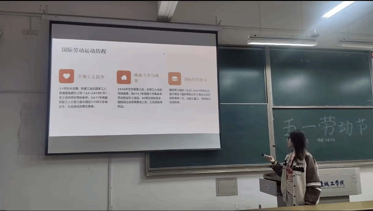 活动中,团支书们讲解了劳动法相关内容以及劳动者权益保护知识。从劳动合同的签订到劳动报酬的支付,从工作时间的限制到劳动安全卫生的保障。不仅让同学们更加深入地了解和尊重劳动者的合法权益,也为他们今后走向社会、维护自身权益奠定了坚实的理论基础。