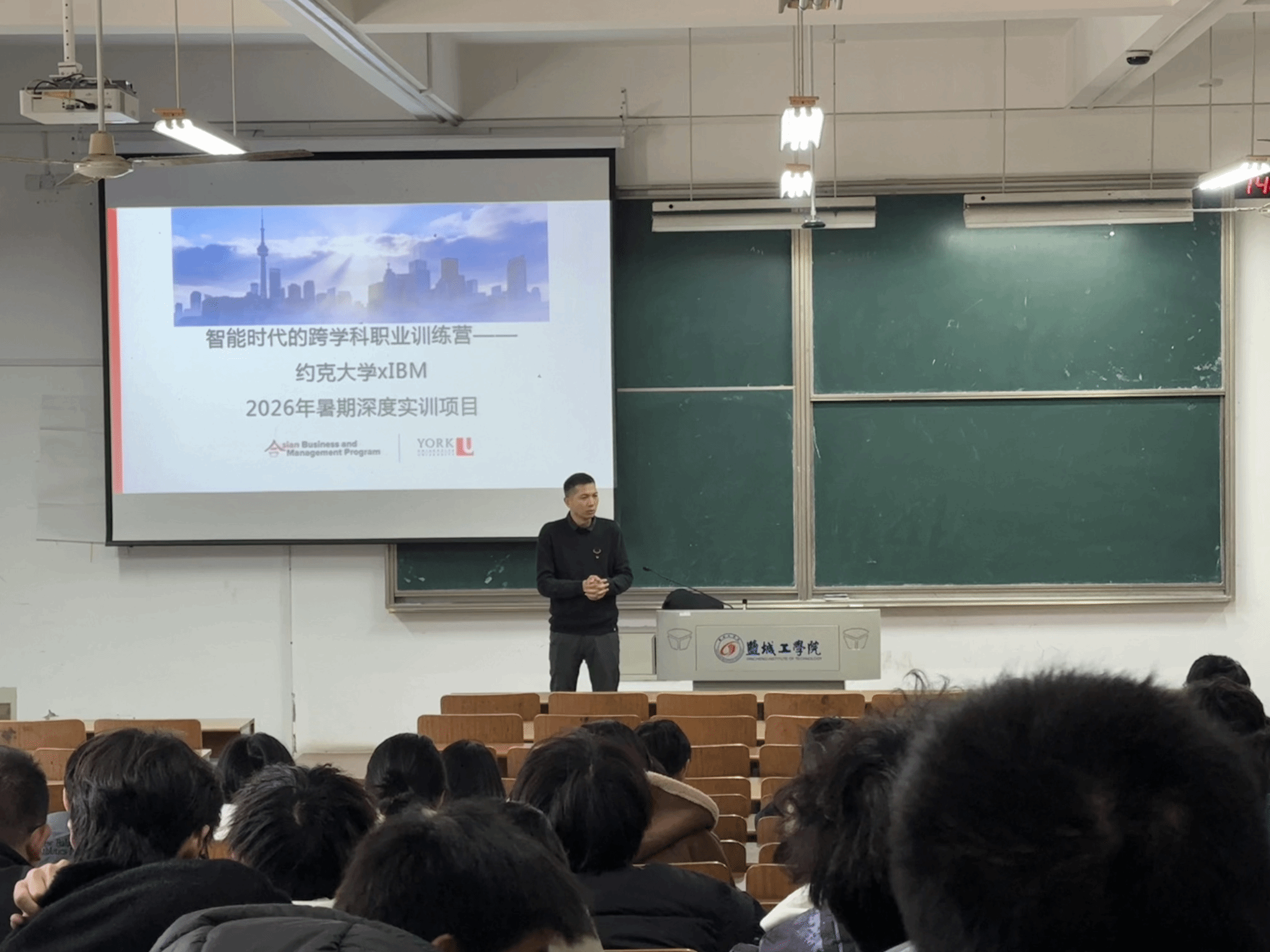3月25日下午,盐城工学院信息学院在博学楼C103举办了专题讲座。此次讲座聚焦于约克大学与IBM联合举办的“智能时代跨学科职业训练营”2026年暑期深度实训项目,学院23、24级100多名学生参与。