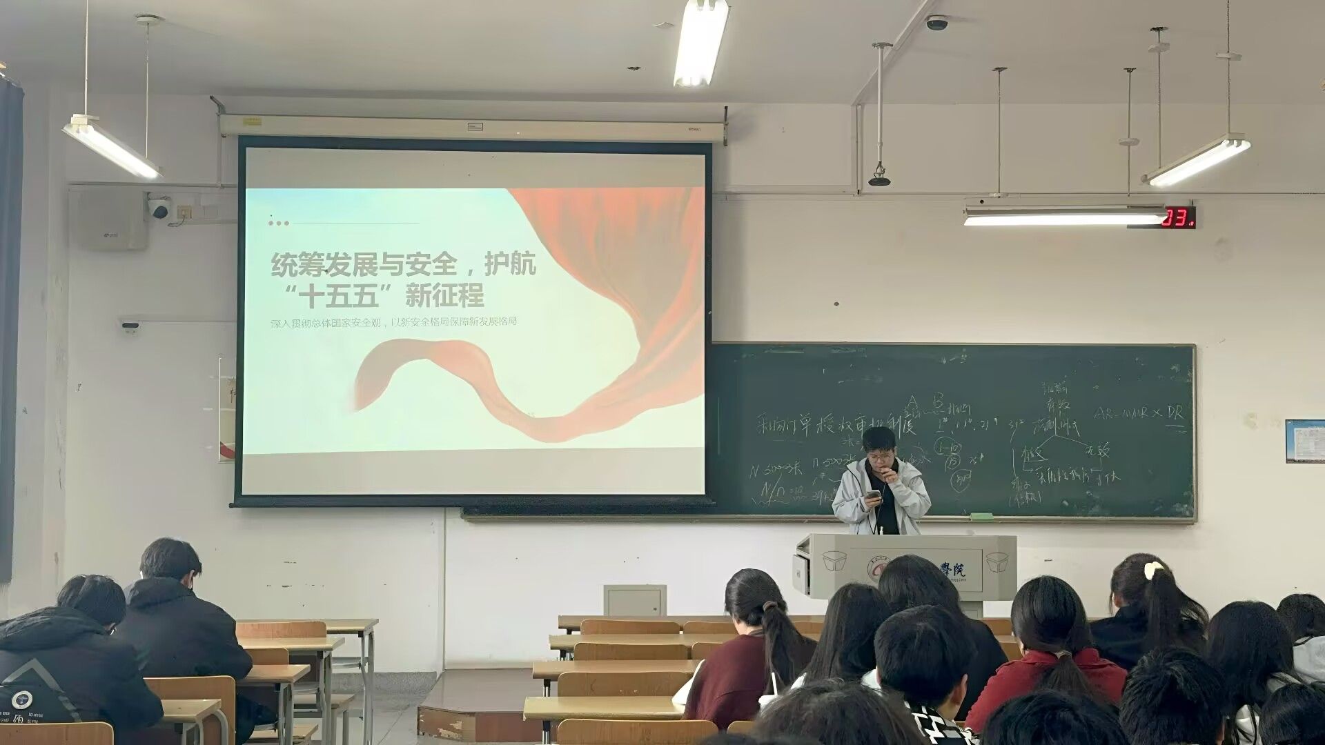 在团支书讲解结束后,学习会进入了互动交流环节。同学们积极踊跃发言,结合自身的学习和生活实际,分享自己的学习心得和体会。辅导员们也积极参与讨论,对同学们的发言进行点评和指导。他们鼓励同学们要树立远大理想,将个人成长与国家发展紧密结合起来,在学习中培养创新精神和实践能力,在实践中锻炼自己的综合素质。