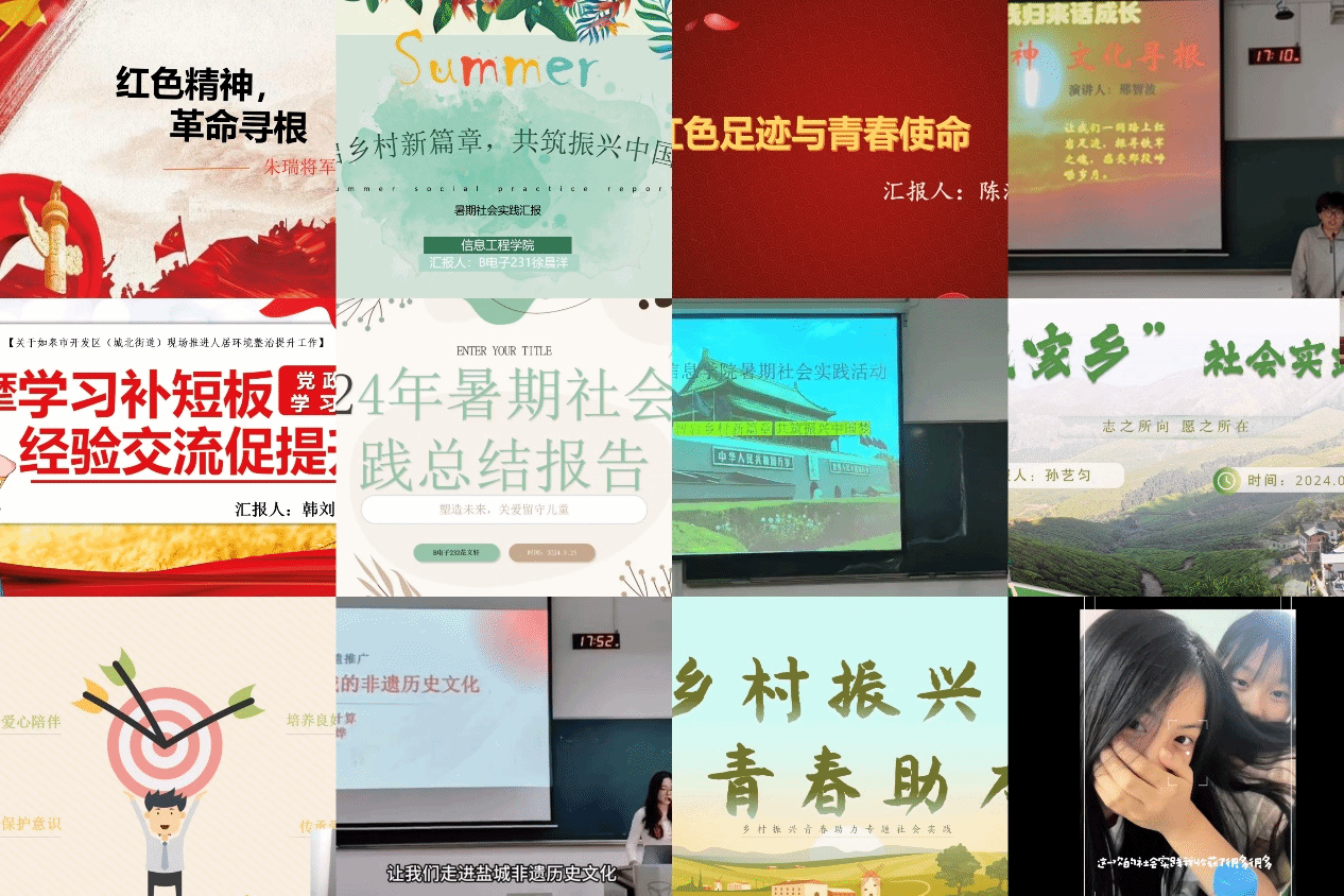 为充分展示2024年暑期社会实践优秀成果,引导同学们积极参加社会实践,增强团队合作意识和人际交往能力,增长社会经验,感受民众文化,坚定理想信念,将实践活动的感悟转化为学习和工作的动力,信息工程学院于9月23日——9月27日举办“实践归来话成长”初选活动。
