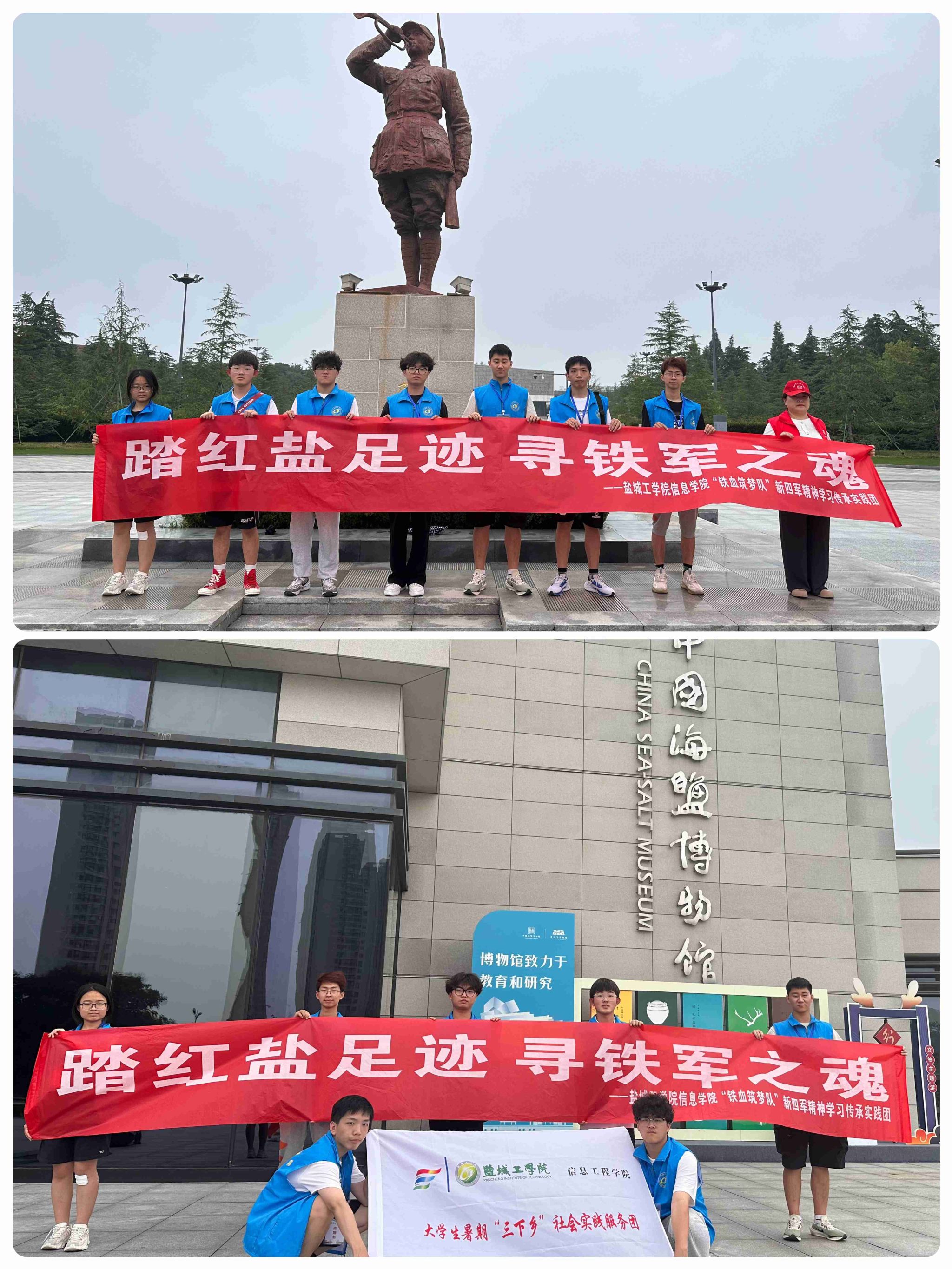 为弘扬铁军精神,传承红色文化,盐城工学院信息工程学院组织学生走进盐城市区、滨海县、响水县等地开展“踏红盐足迹,寻铁军之魂”主题暑期社会实践系列活动。