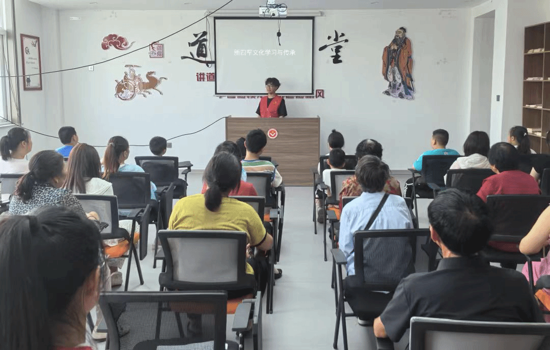 为进一步传承和发扬铁军精神,实践团成员们分别前往滨海县西坎村党群服务中心和响水县小尖镇文明时代所为社区开展“传承新四军革命精神,凝成新时代奋进力量”主题宣讲。成员们向社区儿童展示了前期采访过程中的视频与文字材料,介绍了新四军文化的发展历程和革命先烈的英勇事迹,引导社区儿童学习新四军的爱国主义精神,培养坚韧不拔的意志。