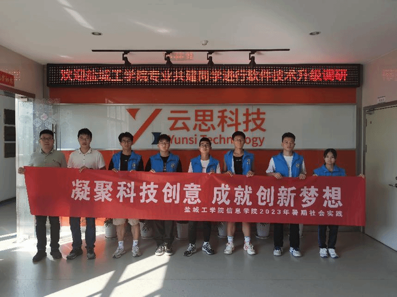 2023年8月8日,信息学院暑期实践团队到江苏云思教育科技有限公司开展“凝聚科技创意 成就创新梦想”主题学习调研活动,活动主要有听取报告、座谈交流、咨询调查等环节,纪锦霖老师和唐钲皓等近10名师生参加活动。