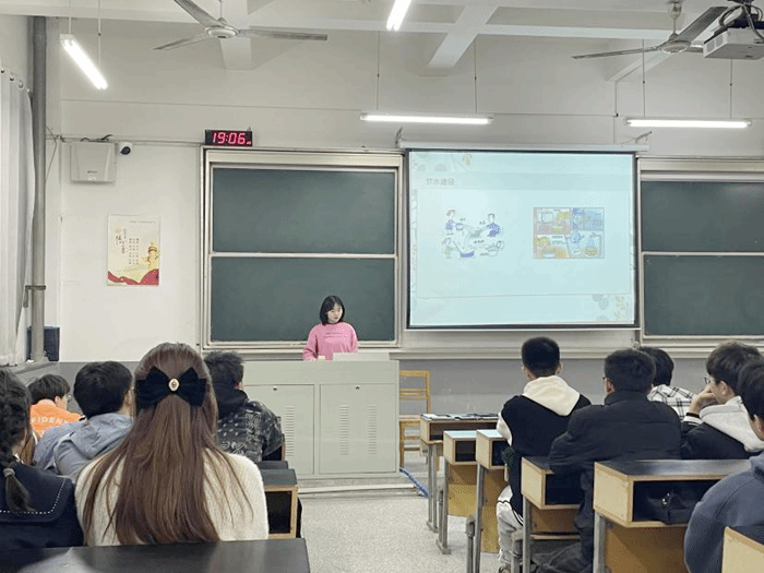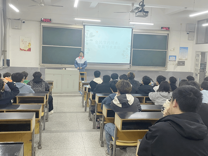 辅导员老师纪锦霖、田雪俐分别为同学们讲解《国家节水行动方案》和《公民节约用水行为规范》,介绍节水的重要意义,分享校园节水的主要内容。班级团支书组织同学们观看节约用水的相关视频。同学们围绕主题开展讨论,交流校园节水的主要途径,分享生活中的节水经验。