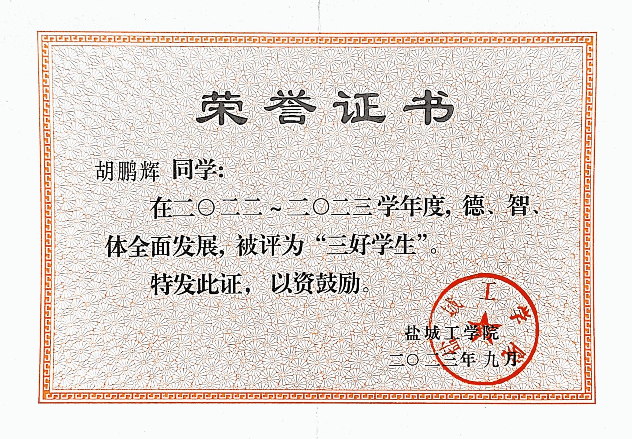 连续两学年获评校“三好学生”