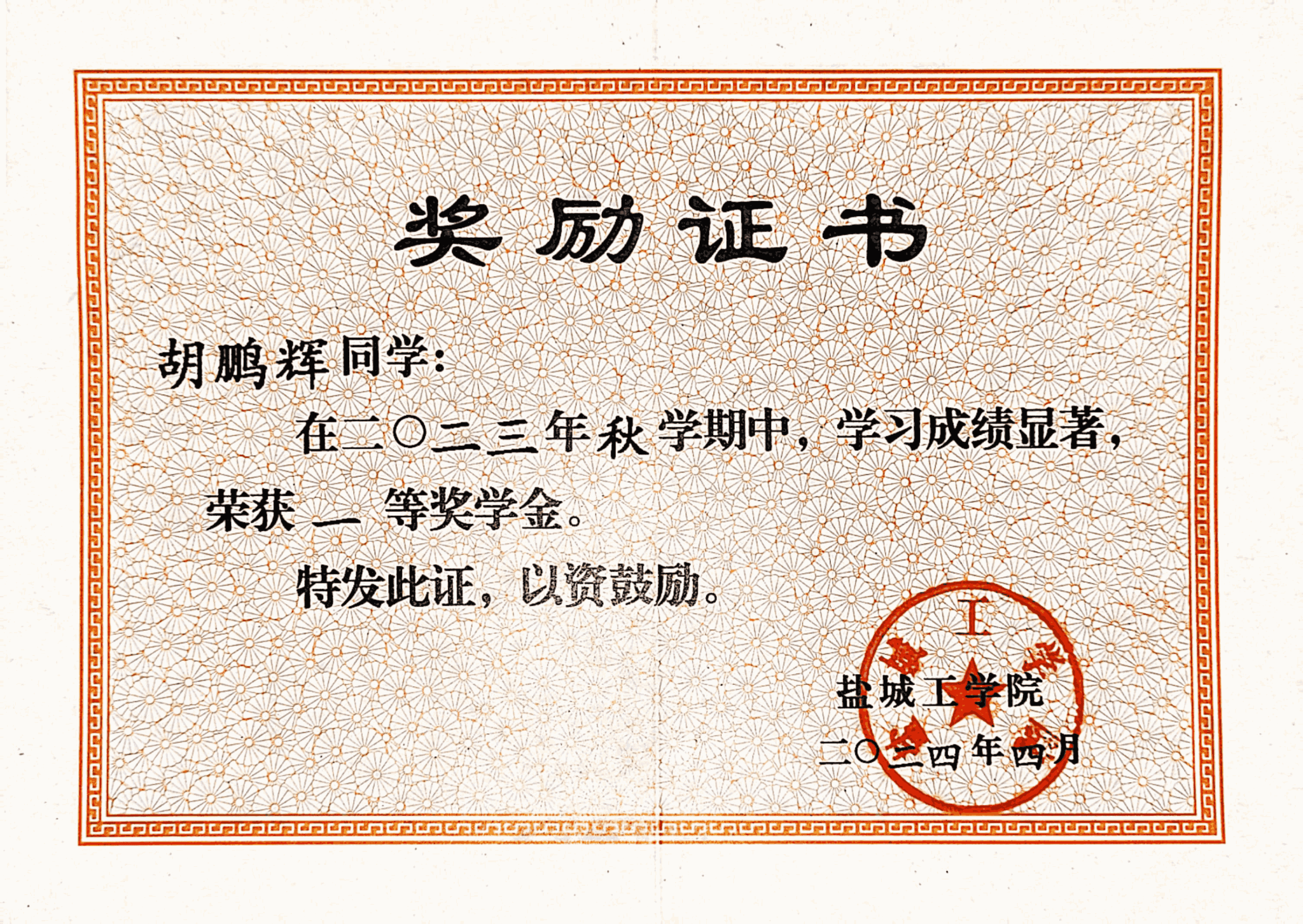 2024年国家奖学金获得者——胡鹏辉