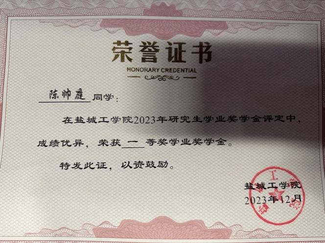 两次获评研究生一等奖学金