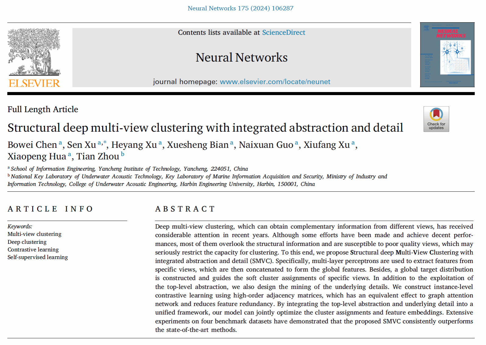 2024年发表论文Structural deep multi-view clustering with integrated abstraction and detail. Neural Networks, 2024:106287.