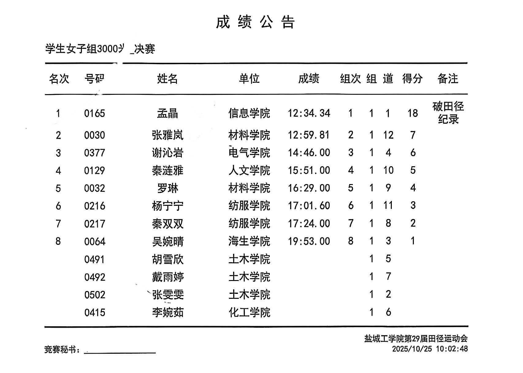 当冲过终点线的那一刻,耳边的风声与欢呼交织在一起,我才真切感受到“突破”二字的重量。刷新两项校田径纪录的这份荣誉,远不止属于我一个人。
