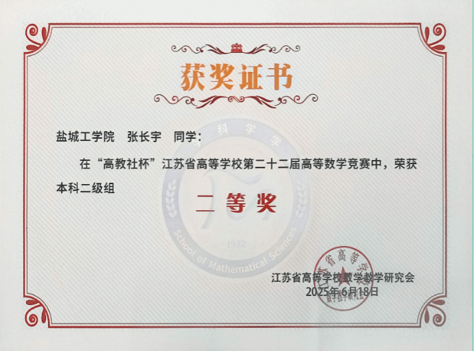 2025.06获江苏省“高教杯”高等数学竞赛二等奖