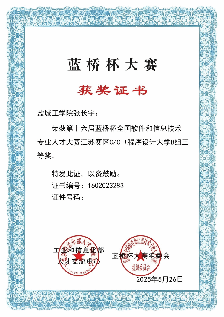 2025.05获第十六届蓝桥杯江苏赛区C/C++程序设计竞赛三等奖
