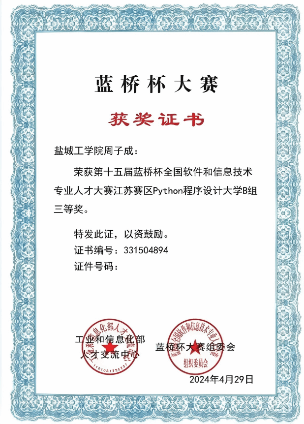 2024年,第十五届蓝桥杯全国软件和信息技术专业人才大赛三等奖
