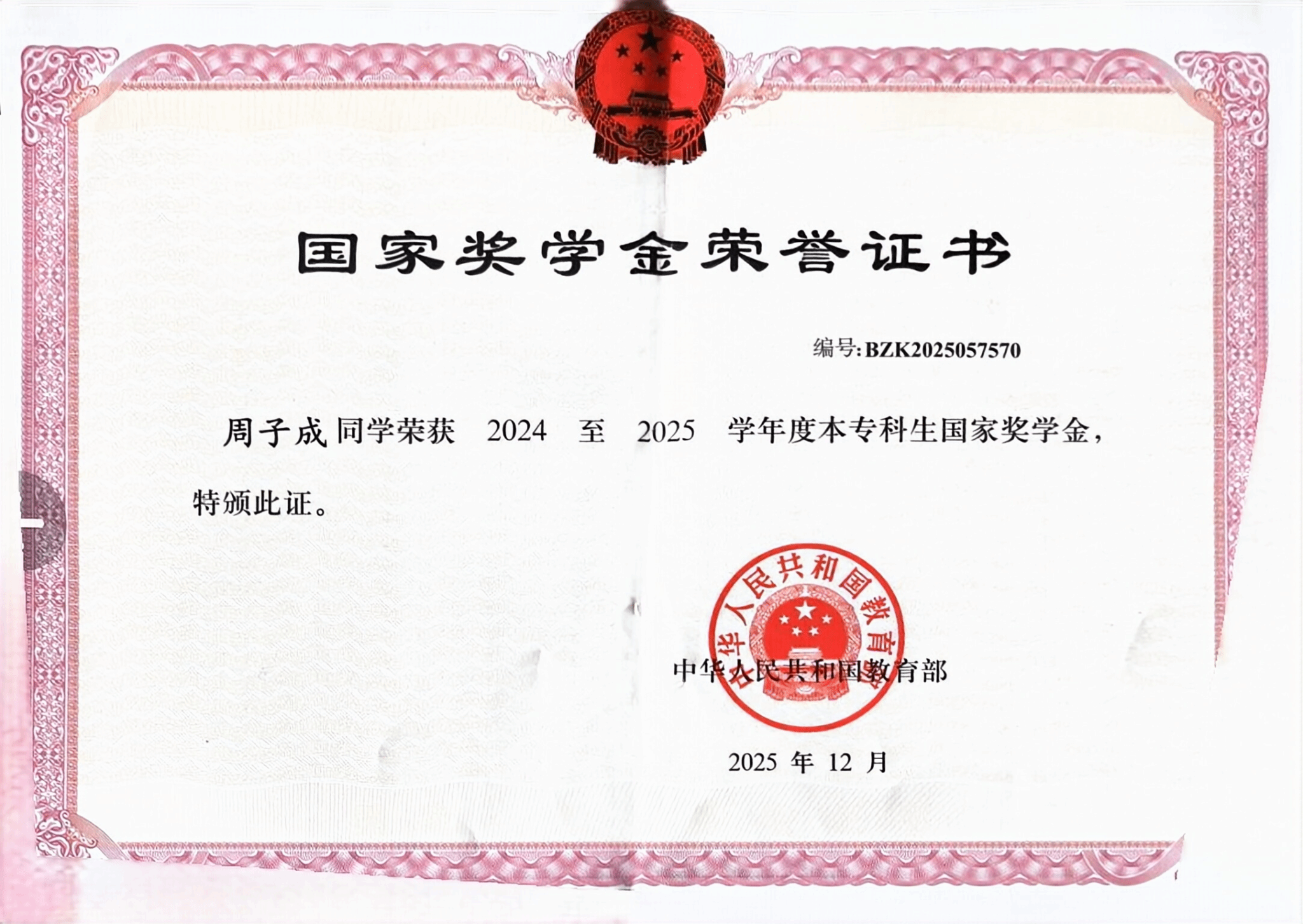 在专业学习上,周子成始终保持着极高的敏锐度。他蝉联4次校一等奖学金,不仅在理论课上精益求精,更致力于将算法应用于工业实景。针对复杂工况下的视觉识别难题,他深度参与两项大创项目,在无数次的模型微调与数据验证中,助力团队成功获得国家发明专利授权。对他而言,代码不是冰冷的字符,而是通往未来科学殿堂的阶梯。目前,他已全身心投入到针对复杂工业场景的数据重训中,向着更高层次的学术殿堂发起冲击。