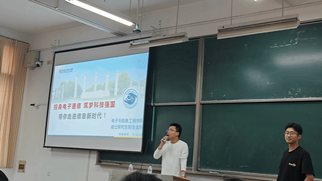 为进一步推动和加强学风建设,充分调动学生考研积极性,帮助学生认清当前考研新形势,树立考研自信心,明确考研目标,营造良好的考研氛围。10月11日下午,信息学院邀请南京信息工程大学电子信息工程学院贾桓、任雨晴在博学楼C301教室召开硕士研究生报名指导暨招生宣讲会。毕业班辅导员董金成主持会议,2025届50余名考研学生参加。