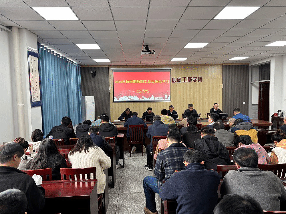 11月20日下午,信息工程学院全体教职工在怀德楼B410会议室开展秋学期第六次常规政治理论学习。本次学习的内容包括:党的二十届三中全会精神学习----《决定》第四部分,构建支持全面创新体制机制;《促进高质量充分就业》习近平,《求是》2024年21期);习近平在中共中央政治局第十七次集体学习关于建设文化强国的重要指示—20241028;《加强文化遗产保护传承 弘扬中华优秀传统文化》(习近平,《求是》2024年第8期)。