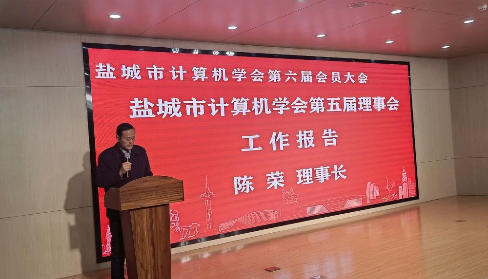 学会理事长陈荣教授作《盐城市计算机学会第五届理事会工作报告》