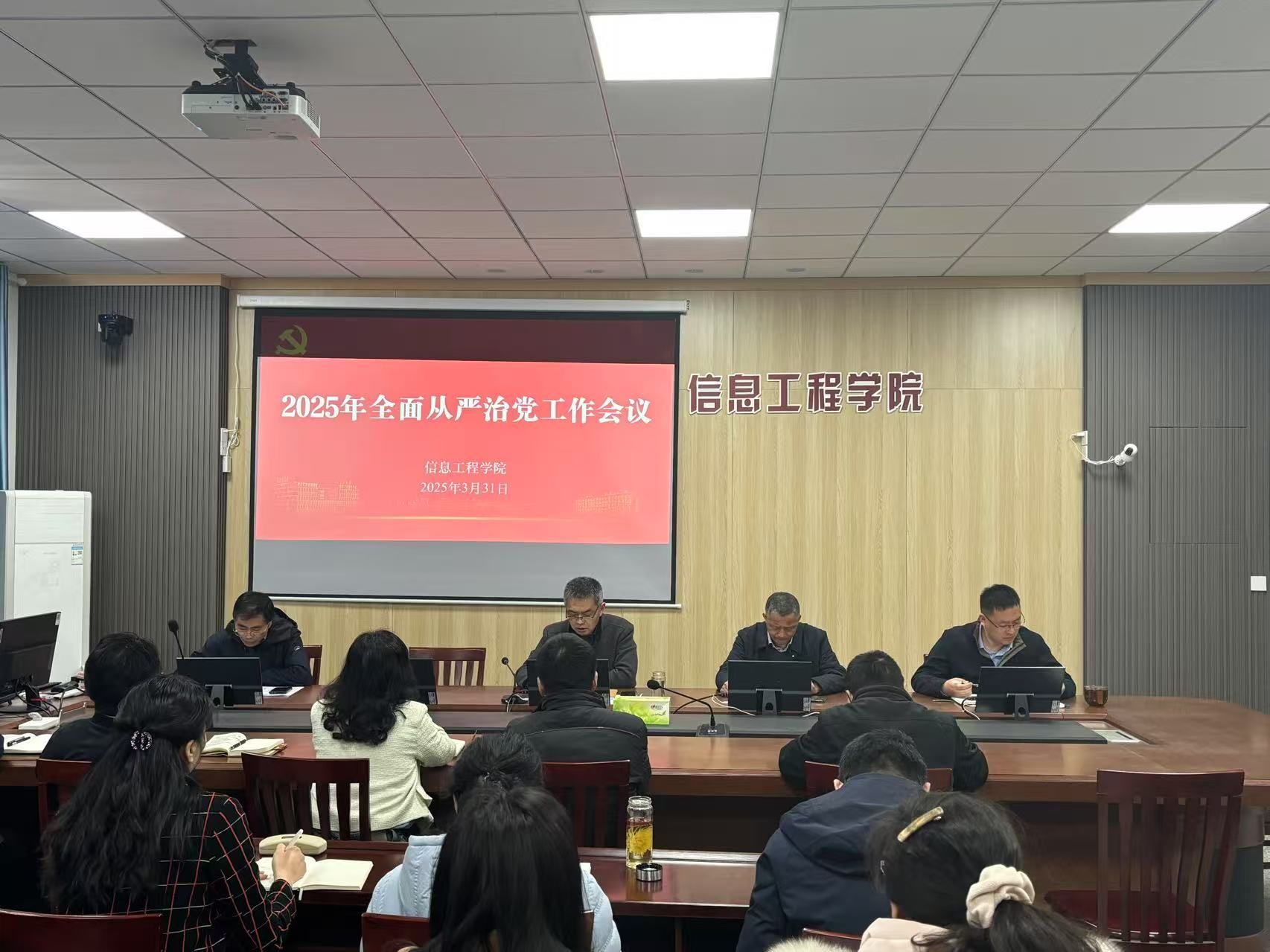 3月31日上午,信息工程学院在怀德楼B410会议召开2025年从严治党工作会议。学院党委书记杨军,院长王如刚,副院长周锋,副书记、纪委书记王源,各科室、专业系、实验中心主任参加会议。