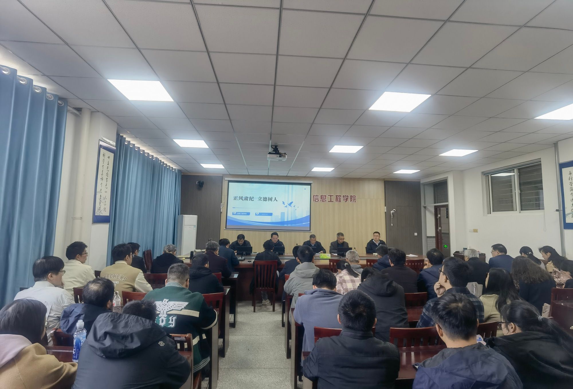 4月2日下午,信息工程学院全体教职工在怀德楼B410学院会议室举行师德师风专题学习会。会议集中学习了关于师德师风的上级文件,反面典型案例和高校教师规范要求。