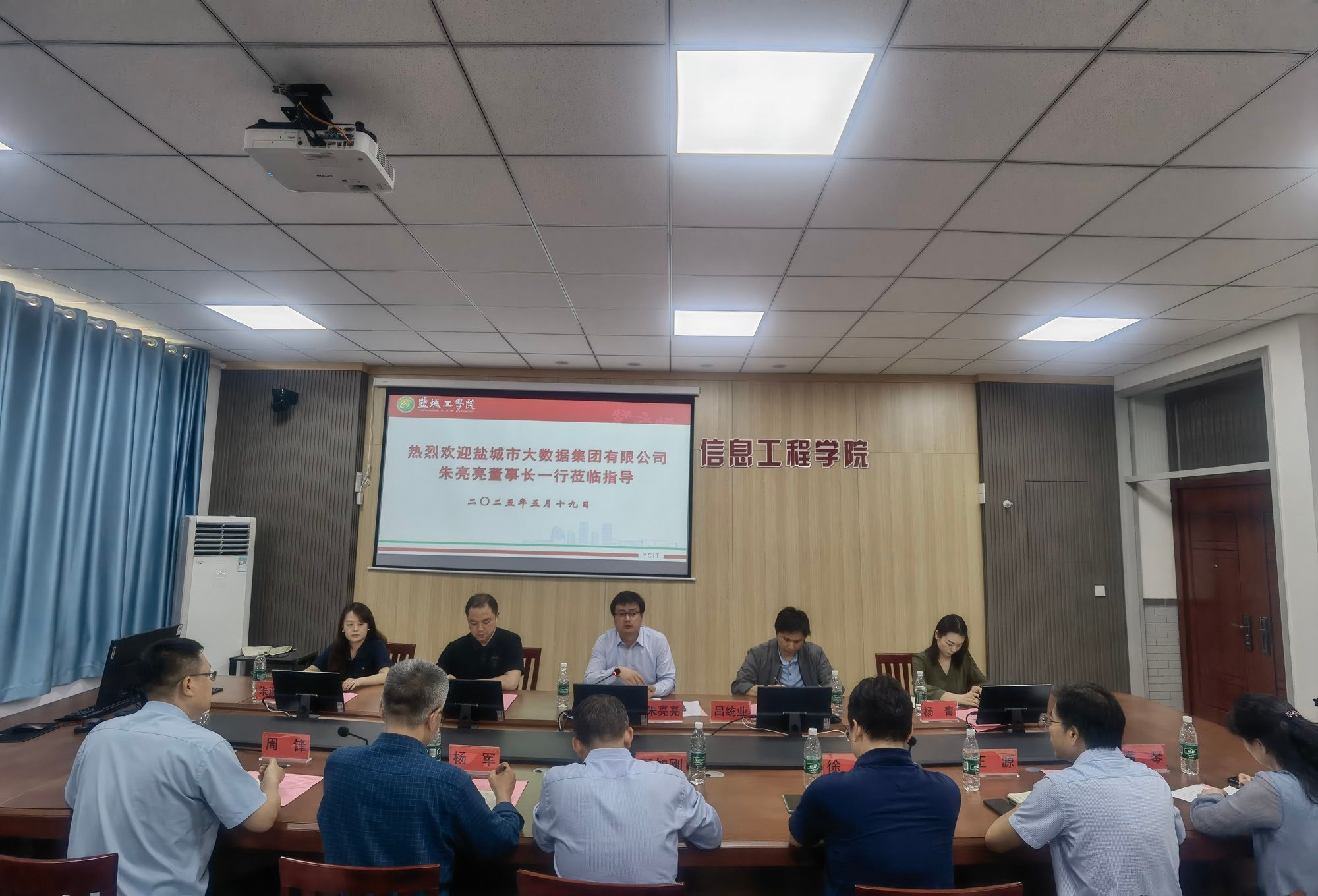 5月19日,盐城市大数据集团有限公司一行莅临信息工程学院,双方在学院会议室举行了校企合作项目交流活动,共同探讨产学研深度融合新模式。