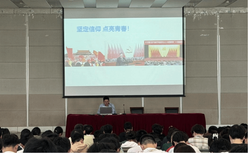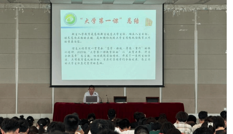 5月12日下午,信息学院在建军东路校区化工楼报告厅召开2023级学生“大学第一课”教育总结会,学院党委副书记戴建主持。辅导员席东风和赵艳老师、高年级优秀学生代表和2023级全体学生近500人参加活动。
