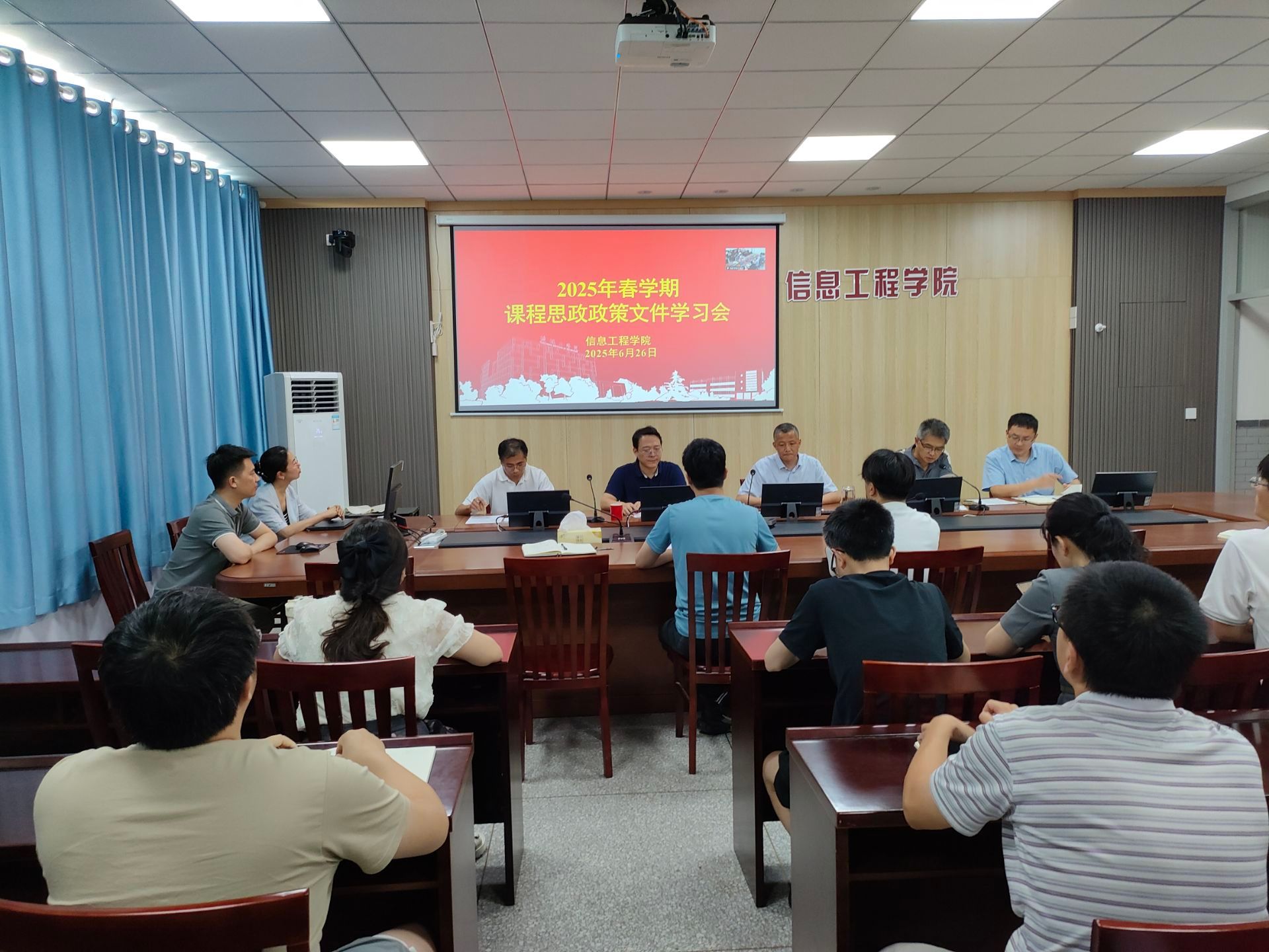 为深入贯彻习近平总书记关于教育的重要论述,全面落实党的教育方针,积极响应全国高校思想政治工作会议精神,落实立德树人根本任务,推进课程思政建设。6月26日下午,信息工程学院于怀德楼B410会议室组织开展了课程思政专项学习活动。此次活动由院长王如刚主持,党总支书记杨军及学院全体教职工参与。