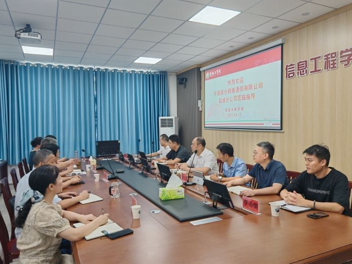 8月12日,中国联合网络通信有限公司盐城分公司副总经理马桂军、徐秋骁一行到访盐城工学院希望大道校区怀德楼B410会议室,开展合作交流。随行人员包括产互办主任孙仁鑫、技术部经理徐伟星、校园部经理张小龙等。校党委常委、副校长王资生出席交流会,信息工程学院党委书记杨军、院长王如刚、副院长周锋、人工智能系主任董琴等参会。双方聚焦中国联通数智化转型成果及AI产品应用,深入探讨了智能创新合作前景。