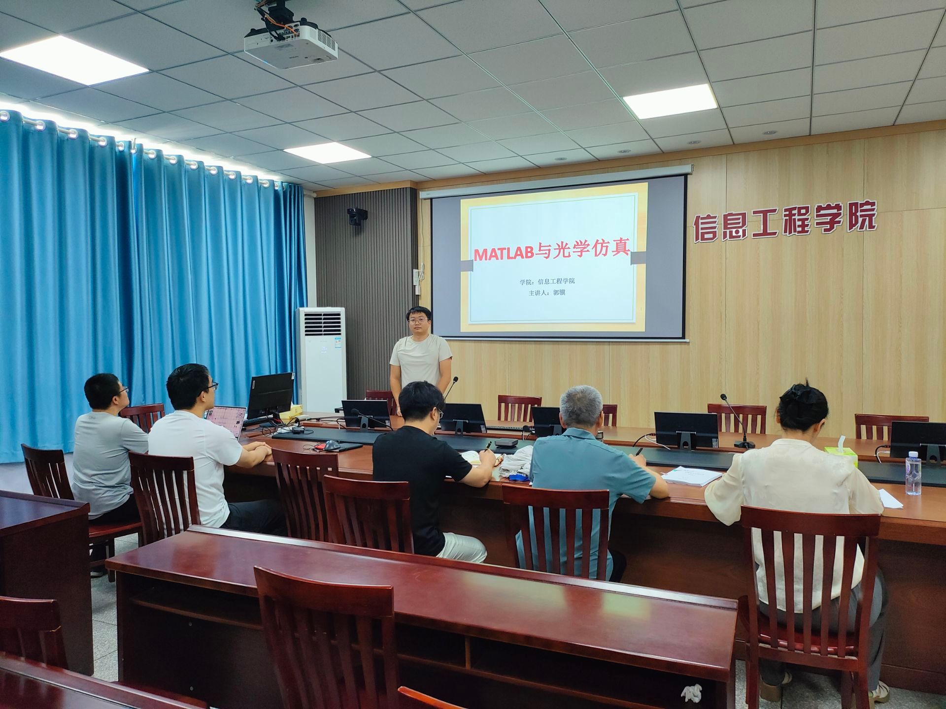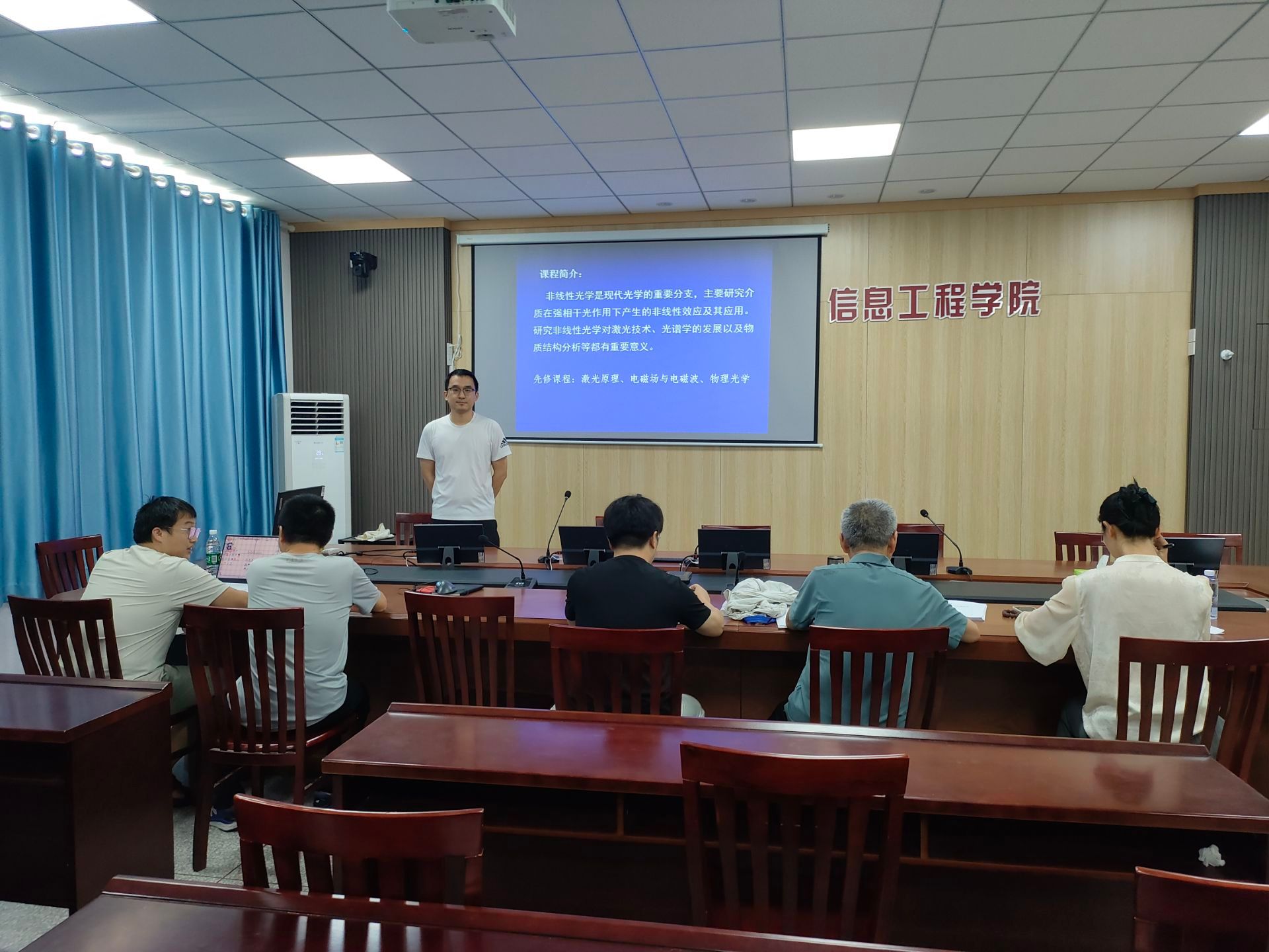 由陈传杰、姚子健、郭骥三位试讲老师此次试讲的课程有《光谱学与光谱技术》、《非线性光学》、《Matlab与光学仿真》。试讲过程中,三位教师严格遵循学院试讲要求,以清晰的逻辑梳理课程设计思路,系统呈现教学内容架构,同时融入案例教学等创新教学方法,充分展现了对课程内容的深度理解与扎实的教学基本功。