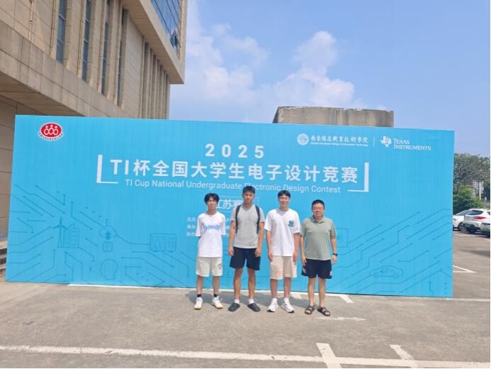 经过4天3夜(7月30号至8月2号)的作品设计制作调试,我院陈传杰博士和王如刚教授指导的易心民(B电子231)、张世杰(B电子231)、刘野枫(B光电信息241)三位同学完成设计题目《电路模型探究装置》,沈兆军副教授和郭乃瑄博士指导的施尹涛(B电子231)、曹杰(G电信231)、颜明远(G电信231)三位同学完成设计题目《简易自行瞄准装置》,孟海涛副教授和王越老师指导的徐哲玮(B光电信息242)、闵紫辰(B网络241)、蔡玟(B电子232)完成设计题目《简易自行瞄准装置》从理论设计、电路搭建、系统调试到报告撰写的全流程实践。经过8月5号在南京信息职业技术学院现场测评,分别获得省级一等奖1项和二等奖2项。