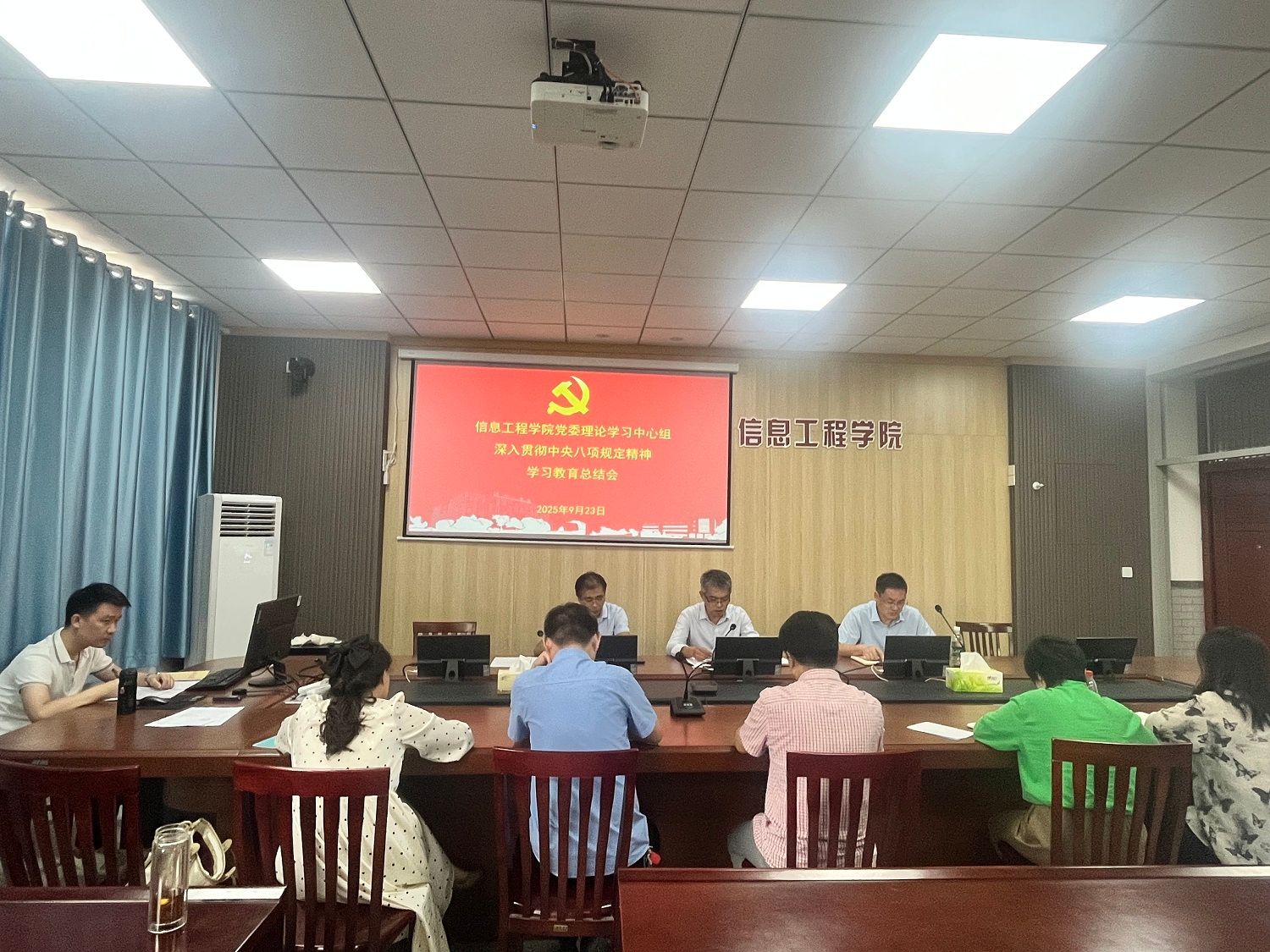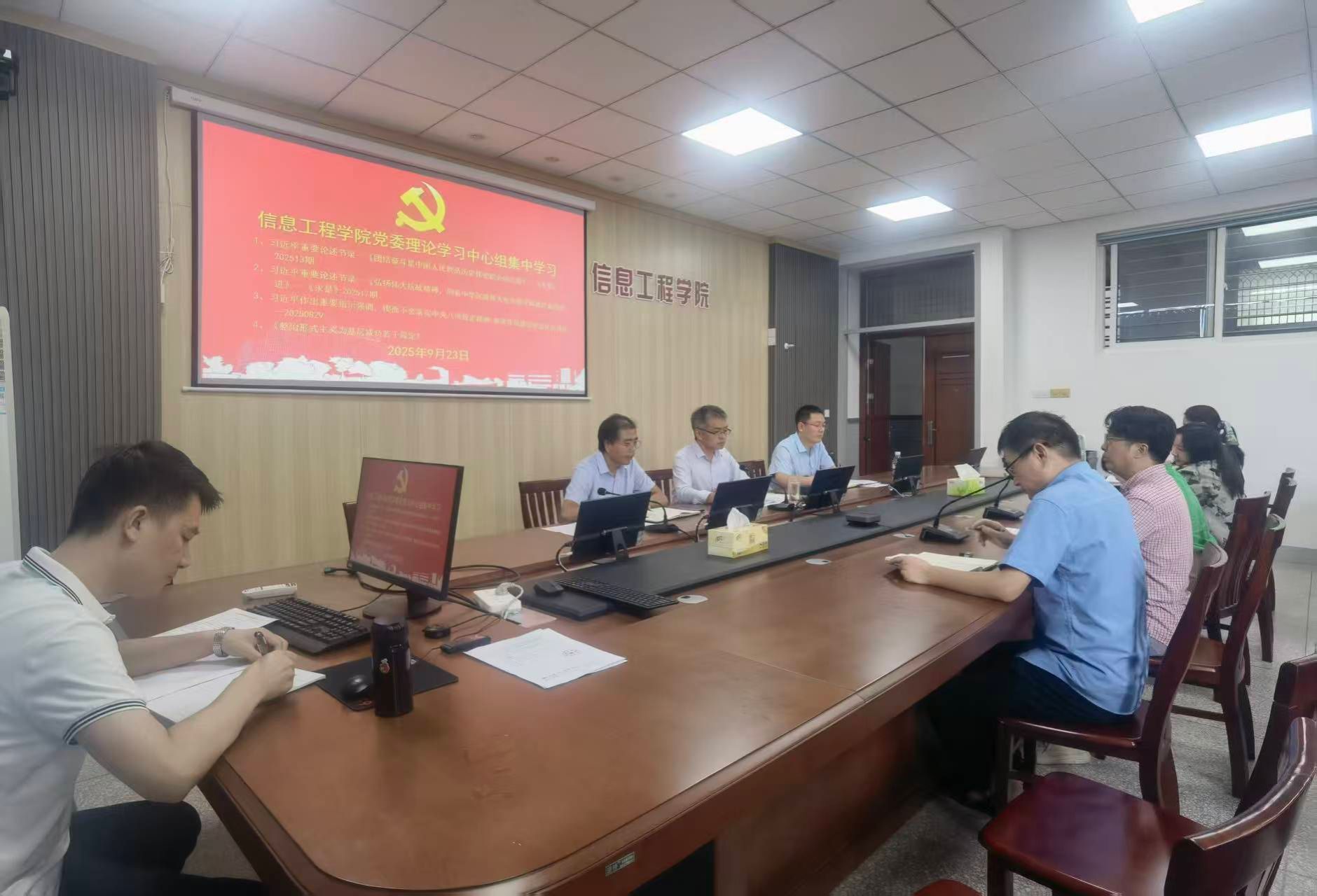 9月23日下午,信息工程学院党委理论学习中心组在怀德楼B410会议室,组织25秋学期第一次集体学习会,会议由学院党委书记杨军主持,党委理论学习中心组成员参加。