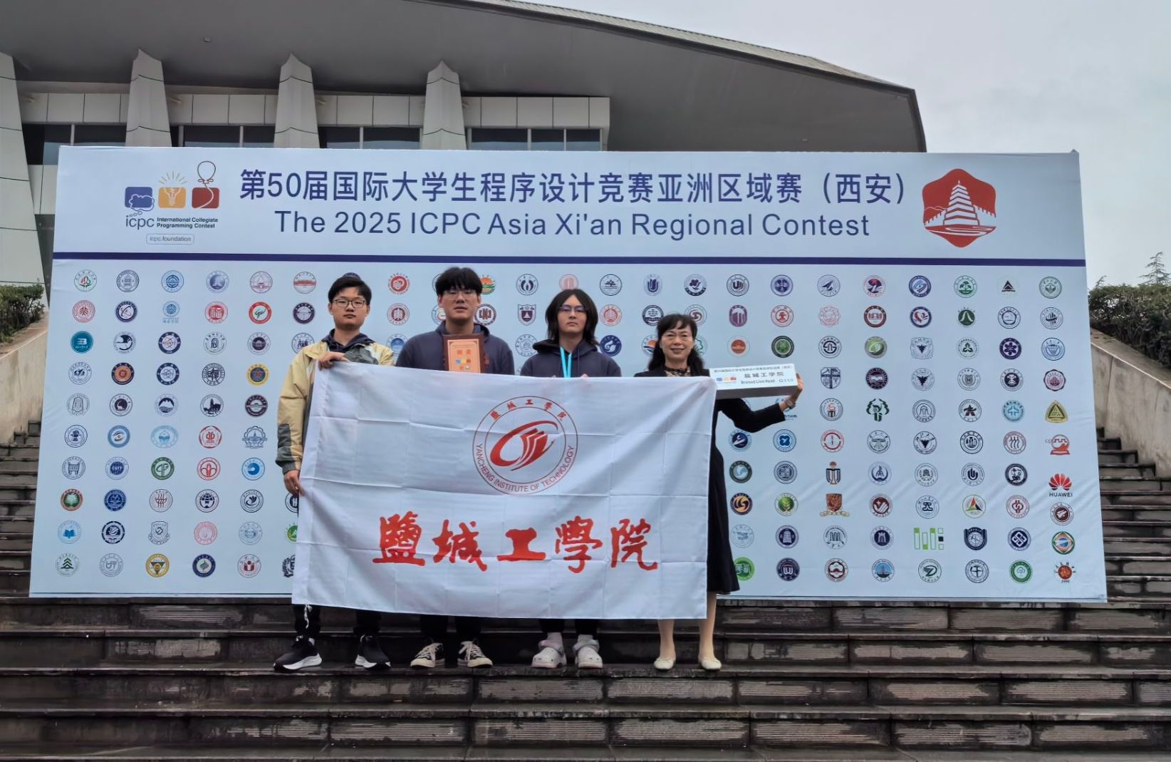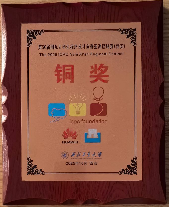 第50届ACM-ICPC国际大学生程序设计亚洲区域赛(西安)于2025年10月18日至19日在西北工业大学长安校区翱翔体育馆顺利举行。本次大赛共有来自200余所高校的417支队伍,1500余名师生参与,参赛高校包括清华大学、北京大学、浙江大学、香港中文大学等著名高校。信息工程学院徐秀芳等老师指导,曹翔、叶学成、张扬三位本科生代表队沉着冷静、奋力拼博,为我校再次夺得一枚铜牌,充分展现盐城工学院学子扎实的计算理论功底、娴熟的编程实践能力,以及面对挑战时主动探索、勇于突破的精神风貌。