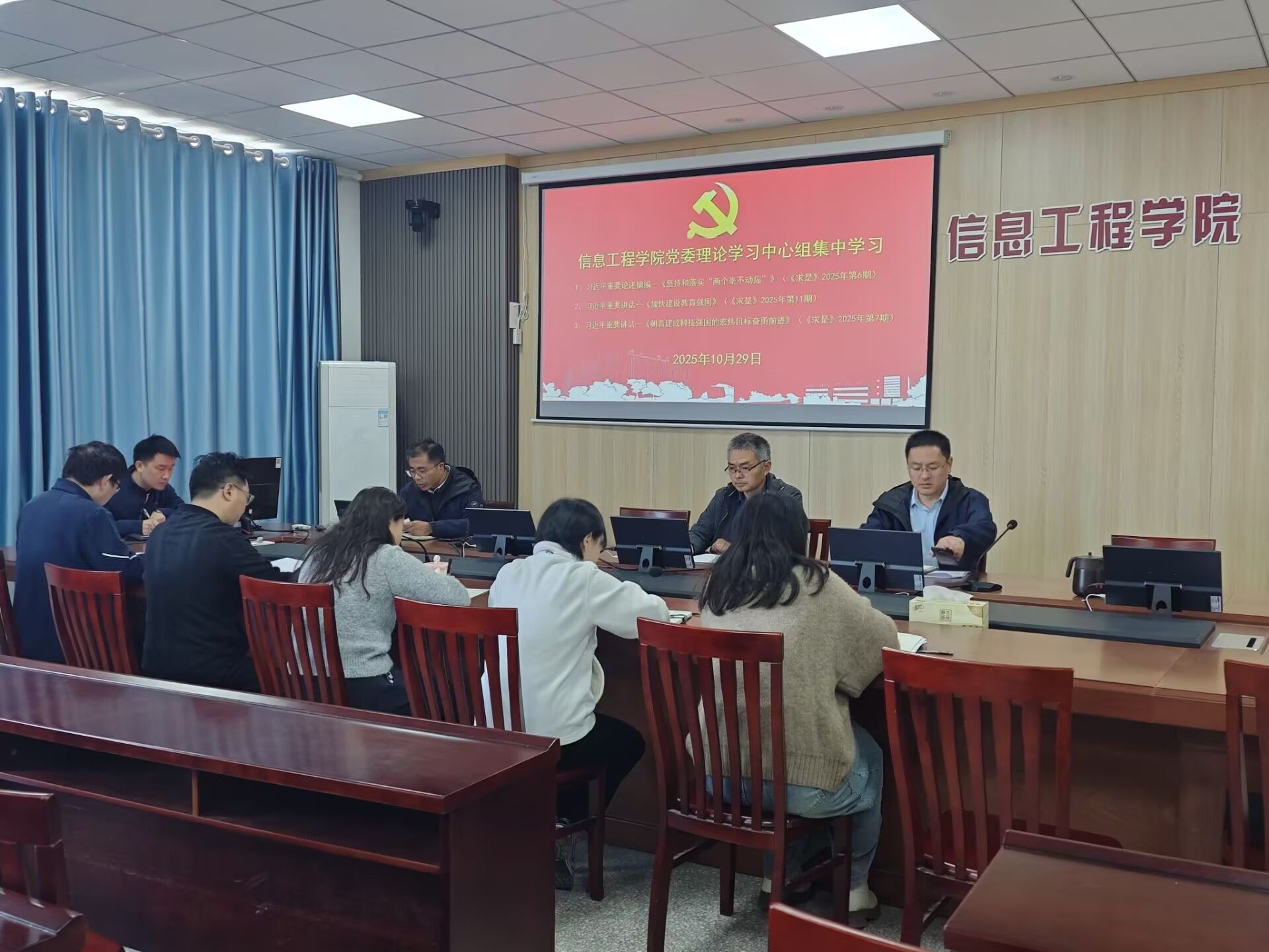 10月29日上午,信息工程学院党委理论学习中心组在怀德楼B410会议室,组织25秋学期第二次集体学习会,会议由学院党委书记杨军主持,党委理论学习中心组成员参加。