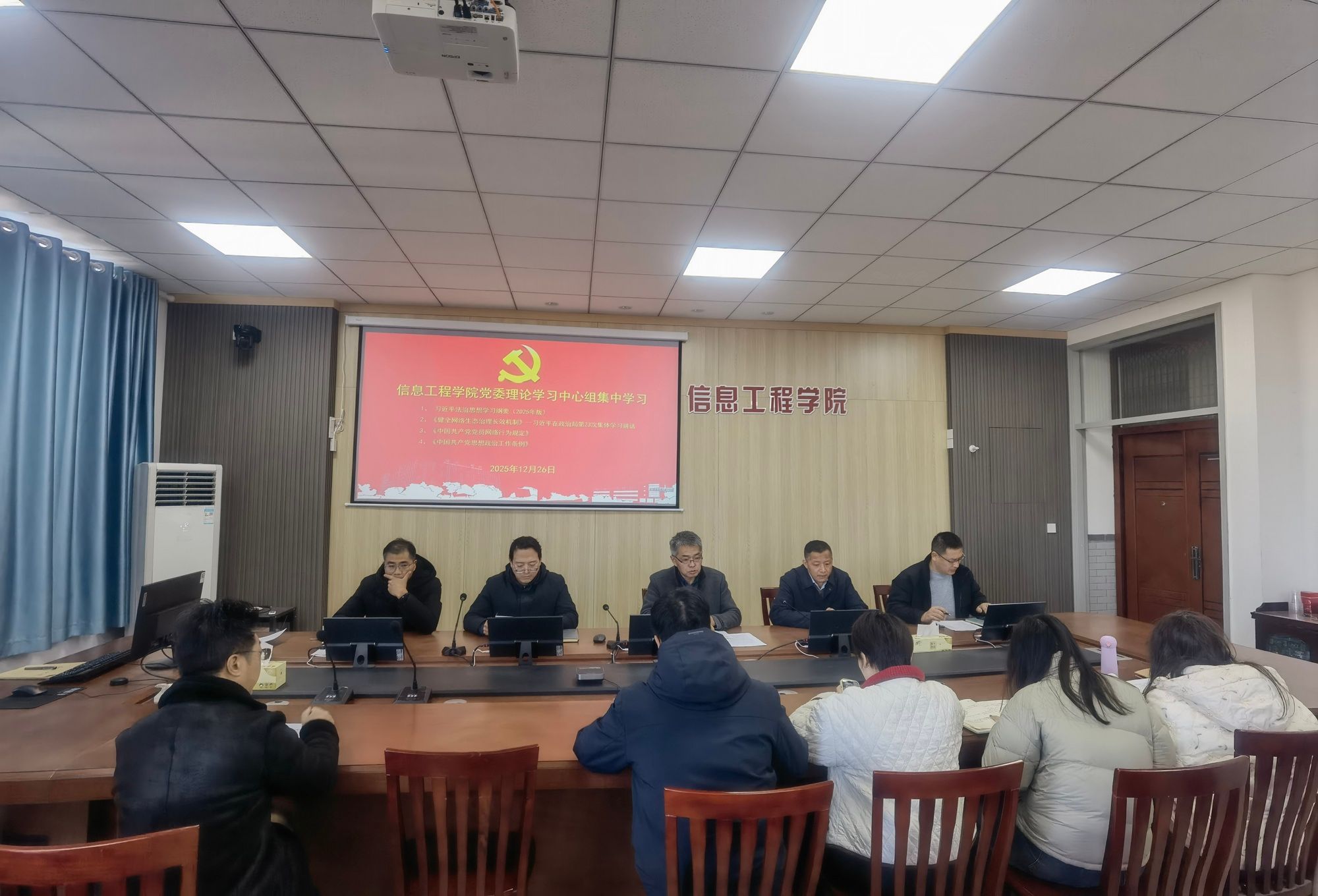12月26日上午,信息工程学院党委理论学习中心组在怀德楼B410会议室,组织25秋学期第四次集体学习会,会议由学院党委书记杨军主持,党委理论学习中心组成员参加。本次学习内容包括:习近平法治思想学习纲要(2025年版);《健全网络生态治理长效机制》--习近平在政治局第23次集体学习讲话;《中国共产党党员网络行为规定》;《中国共产党思想政治工作条例》。