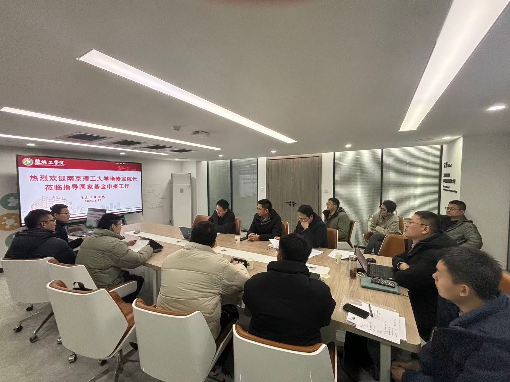 2026年2月27日,一场聚焦国家基金项目申报的高水平指导交流会在西伏河产学研协同创新中心215会议室成功召开。会议特邀南京理工大学隋修宝院长与校内专家徐森副院长指导,两位专家结合自身丰富的评审与申报经验,为与会教师进行了“一对一”的精准点评和深度辅导。科技处处长高健、信息学院副院长周锋出席活动,并与现场多位拟申报国家基金的教师展开了热烈的交流与研讨,共同为提升项目申报质量聚力赋能。