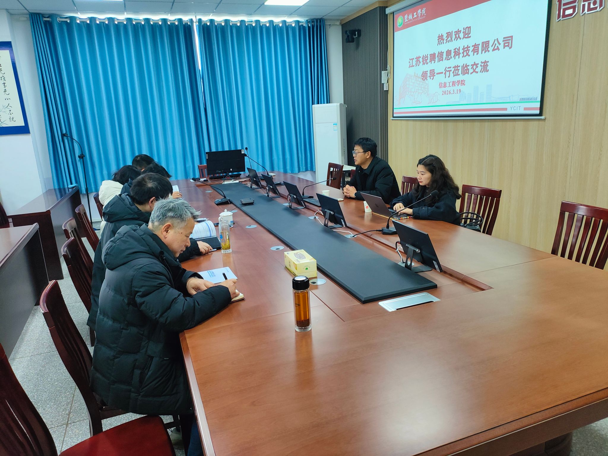 2026年3月19日,江苏锐聘信息科技有限公司(QST青软实训)长三角区域负责人程志伟一行应邀来访信息工程学院,围绕人工智能通识课、实训、师资培训开展深入交流。信息工程学院副院长徐森、教科研办公室主任孔维宾、计算机科学与技术系主任朱锦新、人工智能系主任董琴及骨干教师代表共同参会。
