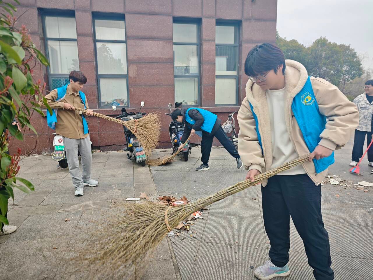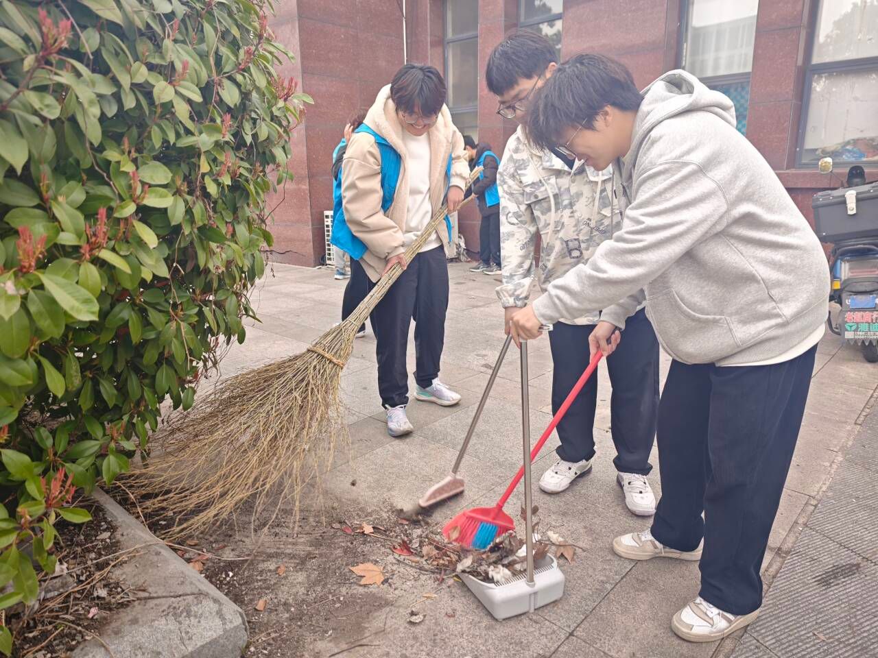 活动现场,同学们自发分成多个小组,手持垃圾袋、清洁夹等工具,对校门周边区域展开拉网式清理。大家分工明确、配合默契:有的弯腰俯身,逐一捡拾绿化带内藏匿的烟头、零食包装袋;有的清扫路面散落的废纸、落叶;还有的仔细清理墙角缝隙中积存的细碎垃圾,连平日极易被忽略的卫生死角也被彻底打扫干净。路过的师生纷纷投来赞许的目光,同学们在认可中越干越有劲头,用实际行动诠释了"雷锋精神,人人可学;奉献爱心,处处可为"的深刻内涵。