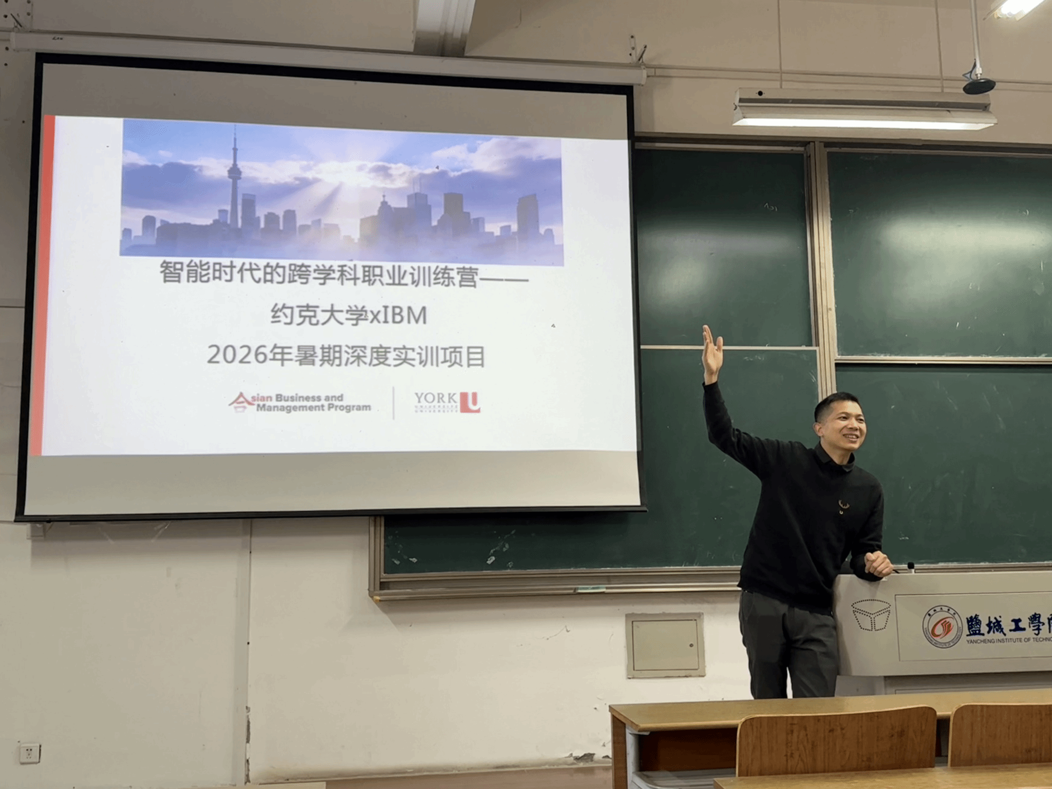 3月25日下午,盐城工学院信息学院在博学楼C103举办了专题讲座。此次讲座聚焦于约克大学与IBM联合举办的“智能时代跨学科职业训练营”2026年暑期深度实训项目,学院23、24级100多名学生参与。