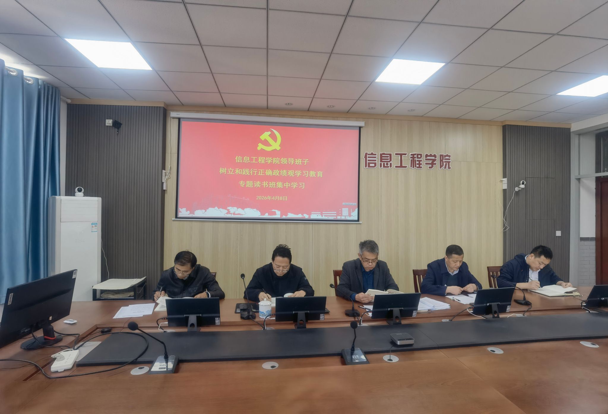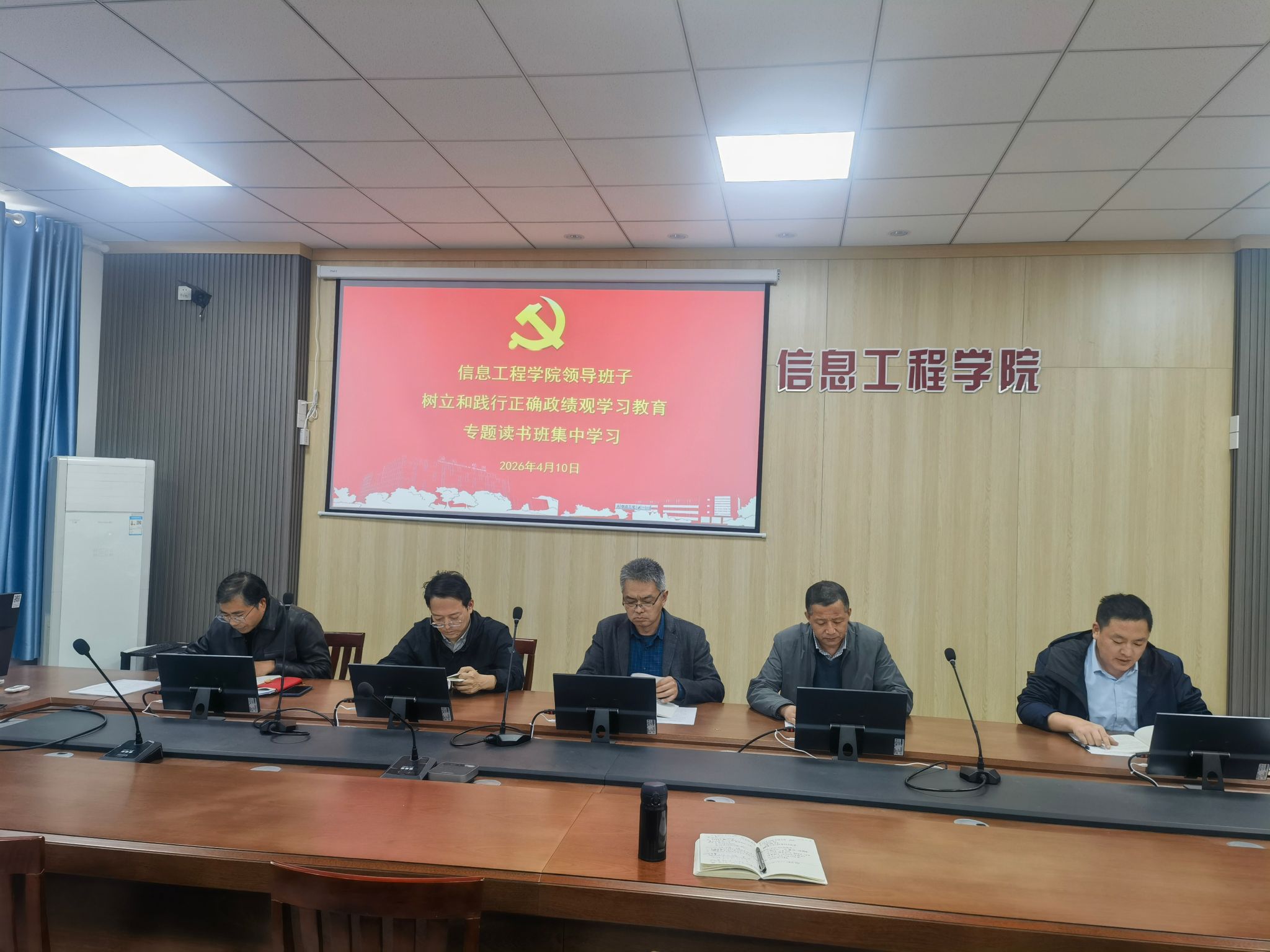 4月8日至10日,信息工程学院举办领导班子树立和践行正确政绩观学习教育专题读书班。学院党委书记杨军,院长王如刚,党委副书记、纪检委员王源、副院长徐森、副院长周锋参加学习。
