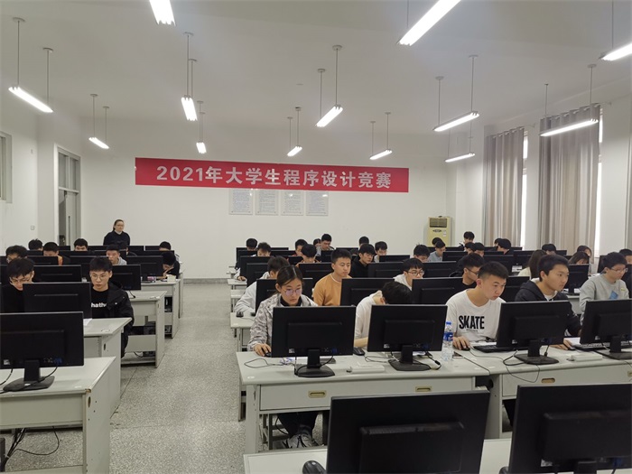 由教务处主办、信息工程学院承办的盐城工学院2021年大学生程序设计竞赛于11月6日下午在南校区博学楼C412,C413机房举行。本次竞赛分专业组和非专业组,采用个人赛的方式进行,有100多名学生参加。