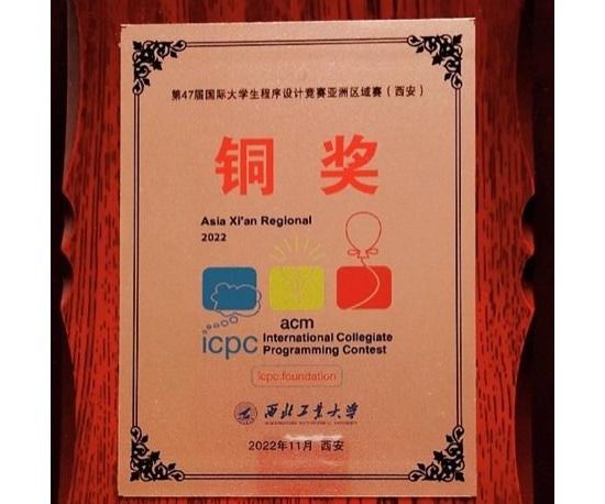 第47届ICPC国际大学生程序设计竞赛亚洲区域赛(西安)于2022年11月12-13日在西北工业大学长安校区举办,受疫情影响,竞赛采用线上方式(Online Contest)举行,包括清华大学、北京大学、上海交通大学、浙江大学在内的249所高校、共计520余支队伍参赛。盐城工学院ICPC集训队员积极备赛、奋力拼搏,最终信息工程学院胡远韬、戴赟、汪鹏和徐秀芳教练组成的“盐工二队”代表队喜获铜奖,在比赛中解决六道编程题,取得“队伍排名186、学校排名110”的好成绩。该奖项在江苏省内同类高校中名列前茅,也是我校在ICPC国际大学生程序设计竞赛中首次获得奖牌。