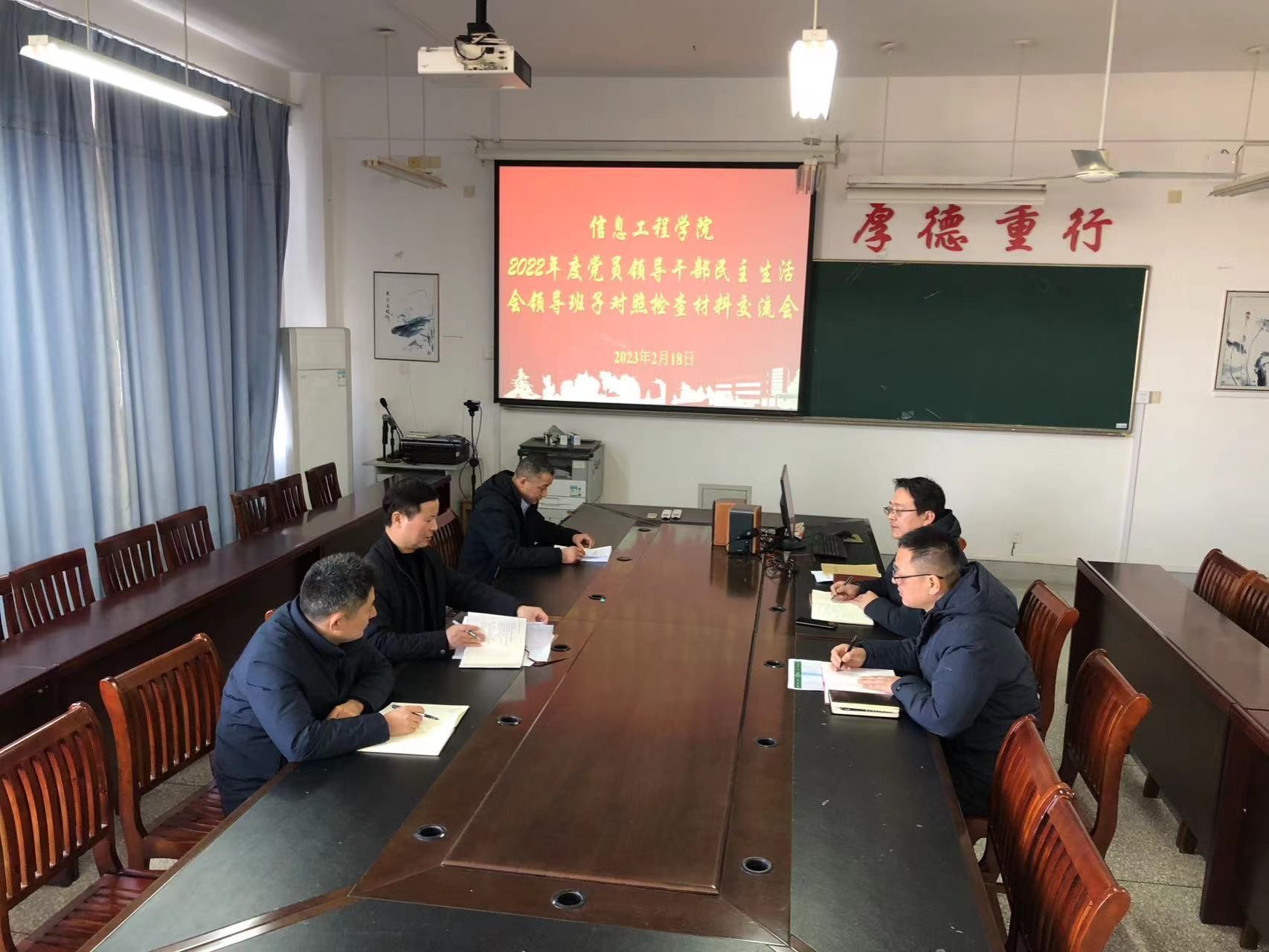 2023年2月18日,根据学校《关于认真开好2022年度民主生活会的通知》(盐工委[2022]80号)的要求,信息工程学院组织召开2022年度党员领导干部民主生活会领导班子对照检查材料交流会。学院领导班子全体成员参会,会议由学院党委书记主持。
